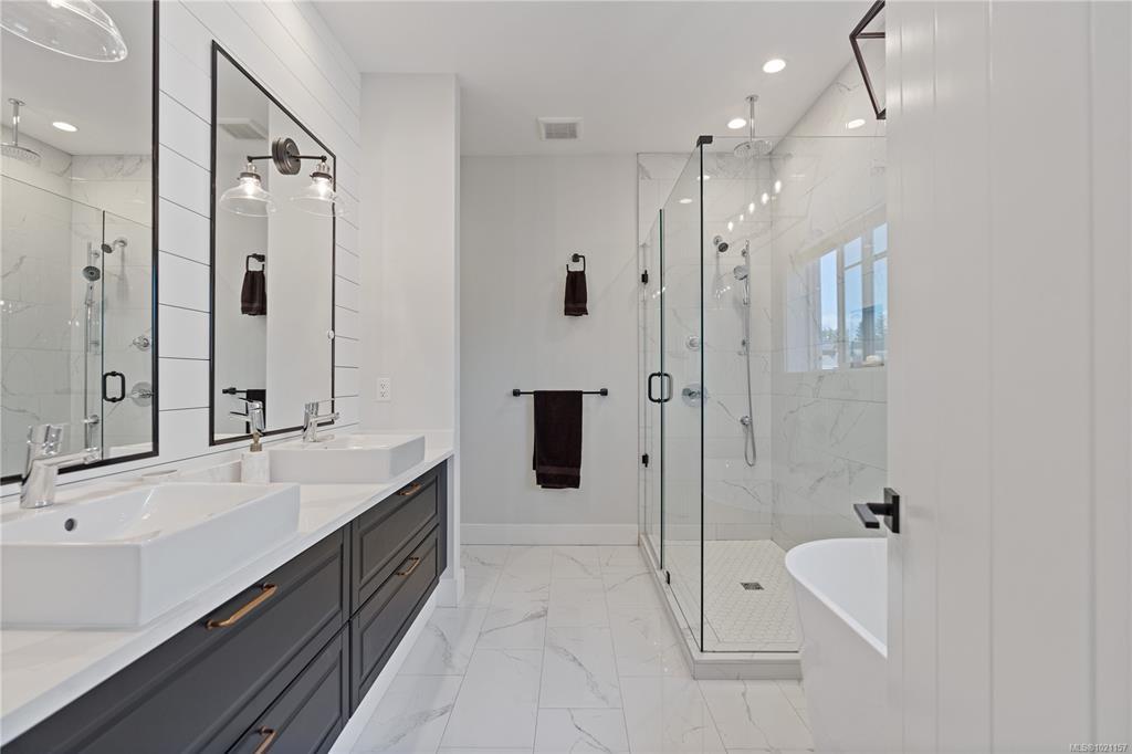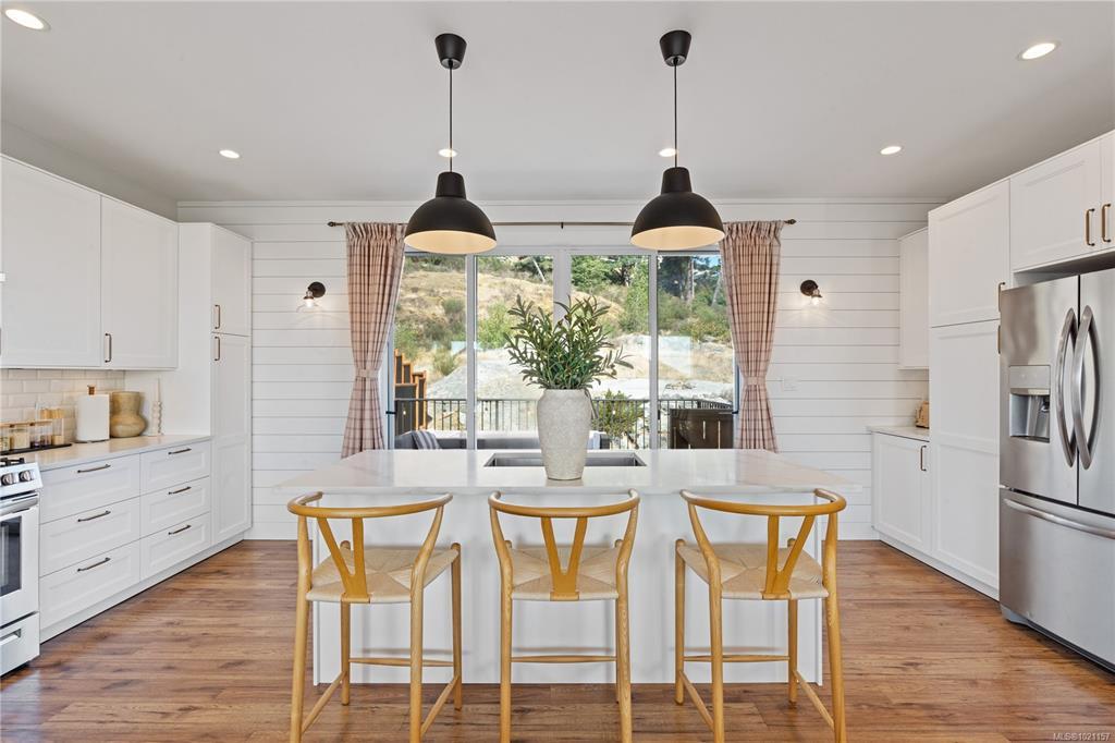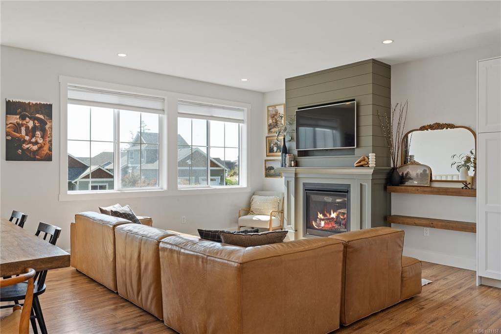 OPEN HOUSE: Saturday, November 29th 12pm-1:30pm | This beautifully finished home in Sooke’s sought-after Stone Ridge Estates sits on an almost ¼-acre lot with stunning ocean and mountain views and space to create your ideal outdoor retreat. The thoughtfully designed interior features shiplap accents, matte black hardware, and statement lighting for a modern farmhouse feel, while oversized windows flood the home with natural light. The main level includes a cozy gas fireplace, ductless heat pump, heated floors in the primary ensuite, spacious laundry room, and double garage. A fully self-contained legal 1 bed / 1 bath suite with its own gas fireplace offers excellent flexibility for guests or rental income. The main backyard is fully fenced, while the upper yard is perfect for campfires, relaxing, and enjoying the views. Finished with a crisp white exterior, low-maintenance landscaping, and a charming wood walkway, all just minutes from schools, shops, and the heart of Sooke.