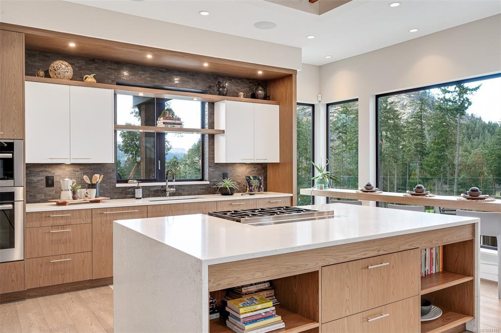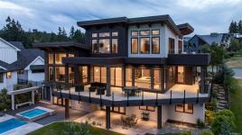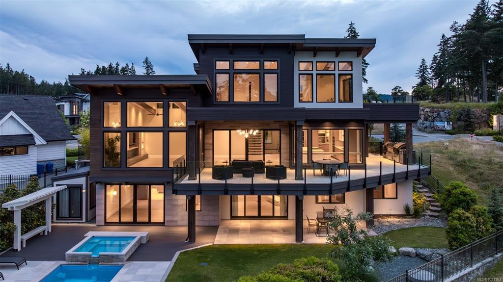Experience luxury living in one of the most coveted executive homes on Bear Mountain. Nestled on a no-through street & overlooking the 3rd hole of the Golf Course, this west coast contemporary gem offers nearly 5,000sq ft of exquisite craftsmanship w/breathtaking views of Mt. Finlayson from every level. The main floor boasts a chef-inspired kitchen w/Sub-Zero & Miele appliances, walk-in pantry, and a breakfast bar. The open concept design flows into the dining area & the impressive living room, complete w/15' vaulted ceilings. Upstairs, discover a dramatic office space, media/guest room, flexible living area & two sun-drenched rooftop patios. The lower level is a private retreat featuring 3 bedrooms, including a luxurious primary suite w/dressing room and a spa-like 5-piece ensuite. Over 2,600 sq. ft. of patios and decks, heated in-ground pool & hot tub - the perfect home for entertaining. This residence embodies resort-style living at its finest!