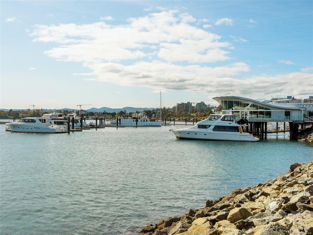 RARE OPPORTUNITY!! Here is a renovated unit in one of the Songhees most desirable and well run strata. Over $250,000 in renos, plus all new kitchen appliances , there's a Fisher Paykel fridge, Wolf oven, range and microwave, Sub-Zero wine fridge, plus walls removed and opened to allow more Songhees light. There’s a new expanded laundry room with a new LGS Stacker washer & dryer plus 2 freezer drawers! There’s even a brand new EV charger in the underground parking. Mariners Landing is an extremely well managed strata maintained to the highest standards, there’s a storage unit, workshop, library and small pets and barbecues are permitted. This is a very friendly community minded building located close to downtown with restaurants like the Boom & Batten, Spinnakers and many more within walking distance. Come see this southwest facing condo overlooking the Inner Harbour entrance.