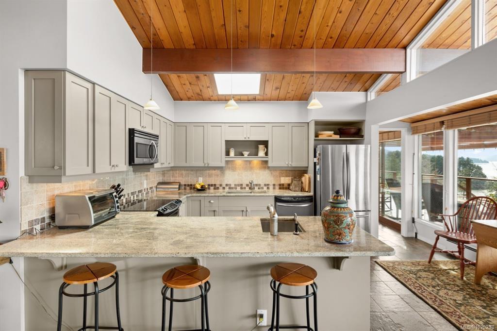 This perfectly situated private and serene oceanfront estate of 4.4 acres enjoys premium southwestern exposure on one of the most desirable locations on Salt Spring. The sun drenched setting overlooks the most fabulous ocean and island views imaginable and provides warm swimming, dramatic sunsets and the level bench at the water’s edge is the perfect spot to launch a kayak, paddleboard or explore the ocean’s edge. The immaculate one level coastal contemporary home, well presented with a stylish neutral design palette, is both comfortable and elegant having light-filled interiors which highlight the seascape backdrop. Outdoors, easy care natural landscape provides many special spots to relax and reflect including ample deck areas, flagstone patios, a covered gazebo as well as a beachfront deck. In addition, there is a workshop and studio for creative endeavors and zoning allowing a future guest cottage. Truly, a remarkable and uncommon offering.