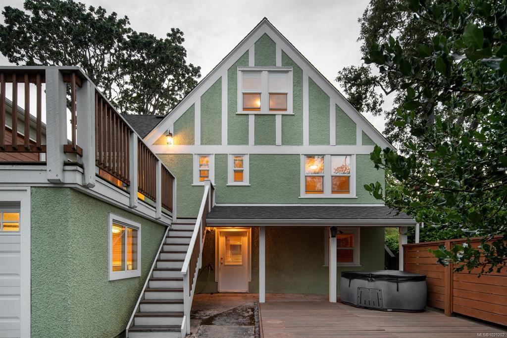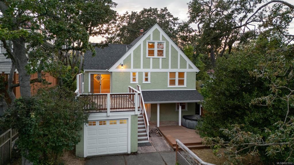 Welcome to 1959 Hampshire Road, a beautifully refurbished character home ideally located in desirable Oak Bay. This spacious residence offers 5 beds, 2baths within nearly 3,000 sq.ft. feet of bright, inviting living space. Newly refinished Oak floors with mahogany inlays& stained glass windows add timeless charm, complementing the generous living room centred around a wood-burning fireplace. Enjoy 529 sq.ft. of outdoor space across 3 decks, perfect for relaxing or entertaining. Additional highlights include a sauna, music room, office w/ separate entrance, wood stove for supplemental heat & plenty of storage throughout. Modern upgrades such as enhanced electrical systems & hot tub add comfort & style. A private electric gate provides access to a quiet lane & the attached garage. Just a few blocks from Willows Beach, Estevan Village, Oak Bay Village & close to Willows Elementary & OB High School, this character-filled home offers a perfect blend of classic appeal & contemporary living.