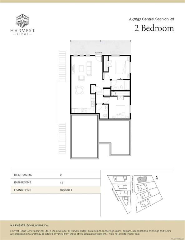 A rare opportunity to own a unique townhome on the sought-after Saanich Peninsula. This home will be completed in spring 2026, protected by a 2-5-10 new home warranty for peace of mind. The small-scale strata design will minimize maintenance and strata fees. Step inside to a one-level open concept layout that seamlessly blends the kitchen, dining, and living areas. The kitchen boasts SS appliances and sleek quartz countertops. Two bedrooms and two baths, this one-level 857 sqft townhome has everything + a yard for play, family or pets. Enjoy year-round comfort with an energy-efficient heat pump providing heating/cooling. Take in stunning sunrises from the east-facing patio; the ideal spot to relax, unwind or entertain guests. Conveniently located for an easy commute to both Sidney and Victoria, Harvest Ridge combines the best of rural charm and central access. Don’t miss out on this opportunity for ownership of a new, versatile home on the Saanich Peninsula at a very reasonable price.