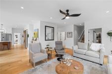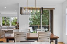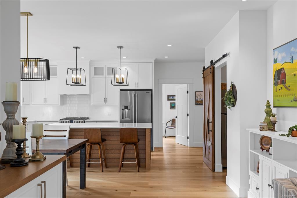 With refined farmhouse styling, ocean views, and lock and go ease, this almost-new home is a standout. The main level features a warm wood and white kitchen with designer lighting, a generous walk in pantry, and tranquil views over a babbling water feature. The dining area opens to the backyard, while the living room offers a gas fireplace and custom cabinetry. The spacious primary suite includes a large walk in closet, extra storage, and a beautifully appointed ensuite with a tile shower. Upstairs, an inviting family room with sundeck access, guest bedroom, and full five piece bath creates a private haven for visitors or hobbies. Outside, the low maintenance landscape with artificial turf, rock gardens, aluminum fencing, and a concrete pad ready for a future shed delivers all the polish without the weekend workload. The location is amazing. Stroll an arbutus lined path to Craig Bay beach, with Englishman River trails and Resort Drive dining and spas all close by.
