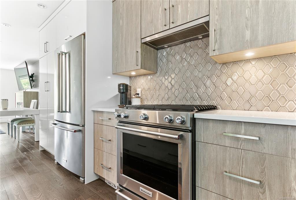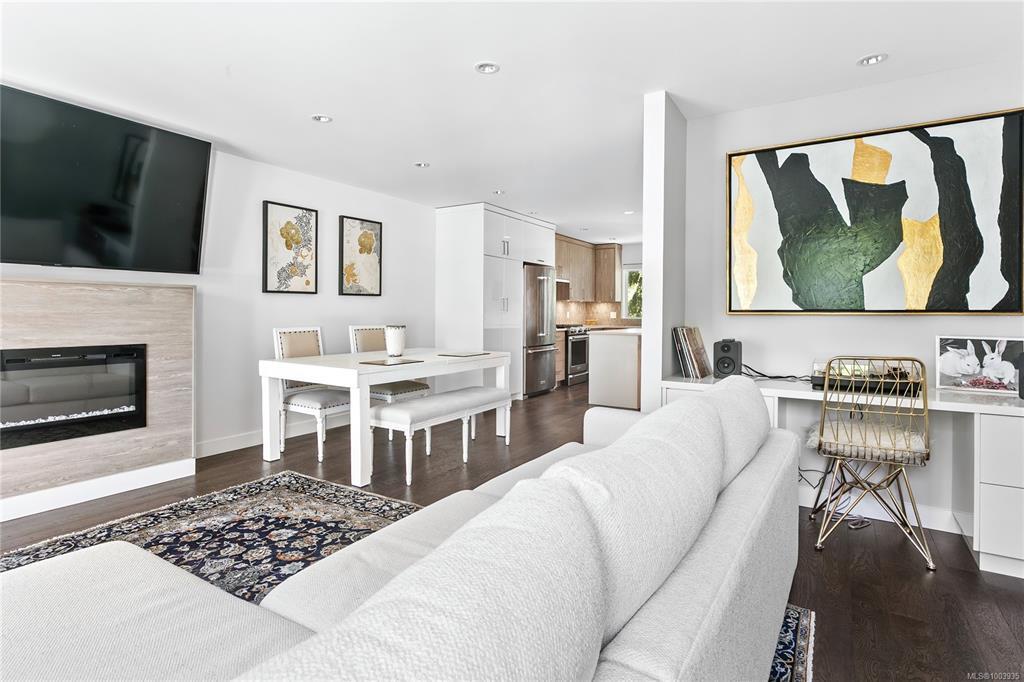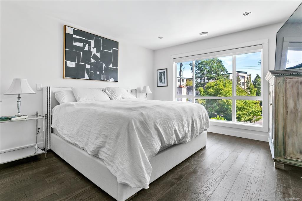 Welcome to 1032 Cloverdale Avenue – a stunning 3 bed, 4 bath end-unit townhome in award-winning Meridian Row by Seba Construction. Built in 2018, this contemporary 1,700+ sq. ft. home spans three levels, ideal for families or professionals. Enjoy designer finishes, wide-plank engineered hardwood, custom tilework, and a chef-inspired kitchen with quartz counters, large island, built-in pantry, and premium KitchenAid appliances with gas range. The main floor opens to a private balcony, perfect for outdoor dining. A flexible layout includes a lower-level bedroom with ensuite, spacious upper bedrooms, and 4 baths. Comfort features include a heat pump, on-demand hot water, central vacuum, and EV/solar-ready setup. Enjoy a private yard, added light, and privacy as an end unit. Located minutes from downtown Victoria, Uptown, Mayfair Mall, parks, schools, and transit—luxury, lifestyle, and location meet here.