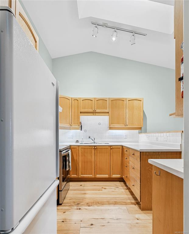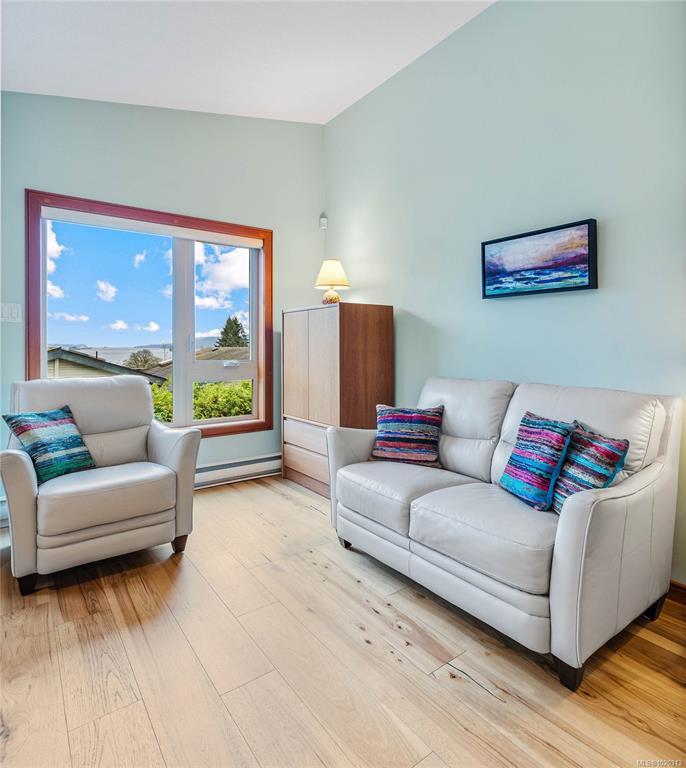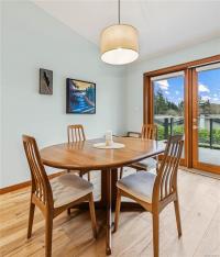 Sophisticated Salt Spring View Townhome. Discover immaculate island living in this quiet, bright townhome within a premier development. The open-concept upper level features wide plank wood flooring, vaulted ceilings and a cozy three-sided propane fireplace, extending to an East-facing sundeck for spectacular Ganges Harbour views and sunrises. The spacious upper Primary Suite offers vaulted ceilings, a private West-facing balcony, walk-in closet, and a stunningly updated, accessible 3-piece bathroom with a walk-in shower and heated floors. The ground floor includes two large bedrooms (one with patio access, one with a Murphy bed) and a private ground-level patio. Solid fir doors and trim ensure an elegant finish. Unmatched location: Walkable to town, shopping, and the hospital. Enjoy the tranquil grounds of Cottonwood Close, featuring a pond and gazebo. Move-in ready with a garage, Level 2 EV charger, new wool stair carpet, and a built-in vacuum. No age, rental, or pet restrictions.