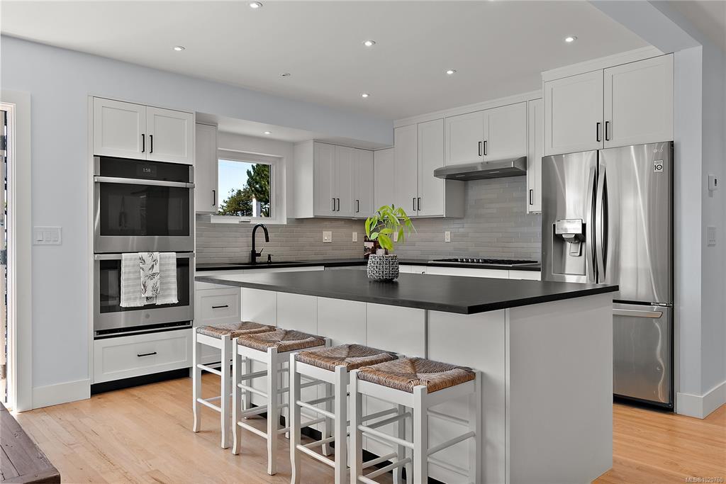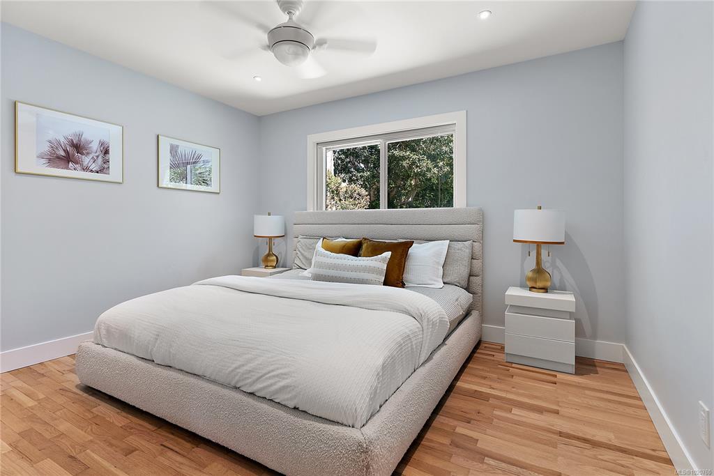 Open House Sat & Sun 1-3pm. Welcome to West Coast elegance in the highly sought-after Harling Point community of Oak Bay, this stunning residence offers the ultimate seaside lifestyle just steps from Gonzales Beach. Recently transformed by over $650,000 in top-to-bottom, down to the studs renovations, this high efficiency home offers 5-bed, 4-bath and 2,200+ sqft of living space. The interior exudes quality with rich hardwood floors, exquisite custom millwork, and in-floor radiant heating. The heart of the home is the high-end open concept chef’s kitchen, sleek cabinetry and modern appliances, which opens via French doors to a spacious, sun-drenched tiled deck. The main-floor primary suite is a true sanctuary with a luxe steam shower. A media room and large laundry with custom cabinetry add exceptional functionality. The flat, South-facing, and fully fenced backyard is a showstopper! Professionally landscaped to include a private Sport Court, turf and putting green! Don't miss out!
