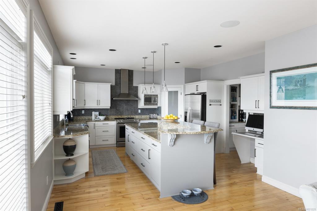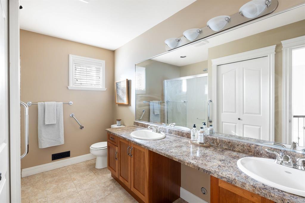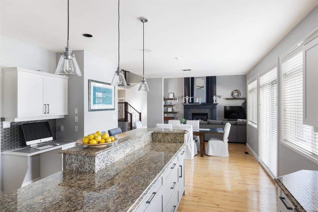 Welcome to 2019 Troon Court, a beautifully designed and updated family home located on a quiet cul-de-sac, just steps from Bear Mountain Village. Offering over 5,900 sqft, this 3-level residence showcases a custom shaker-style kitchen with granite countertops, a walk-in pantry, coffee bar, SS appliances, an expansive sit-up island, and a walk-out covered patio for outdoor entertaining. The great room boasts a soaring 14-ft ceiling, gas FP, formal dining, private office, and a charming library. The main-floor primary offers a 5-piece ensuite and walk-in closets. Upstairs, you’ll find a second primary suite, two additional bedrooms, a full bath, and an open-to-below landing. The lower level features a media room, gym, and a legal 2-bedroom suite with a private entrance and an optional third bedroom for extended family or to add to the suite. Set in a family-friendly laneway neighbourhood, this home is complete with a 3-car garage, mature landscaping, and welcoming curb appeal.