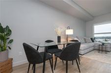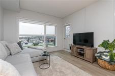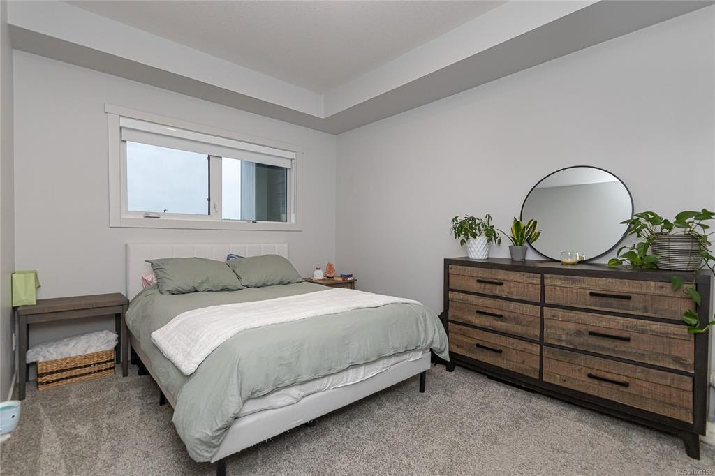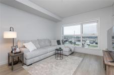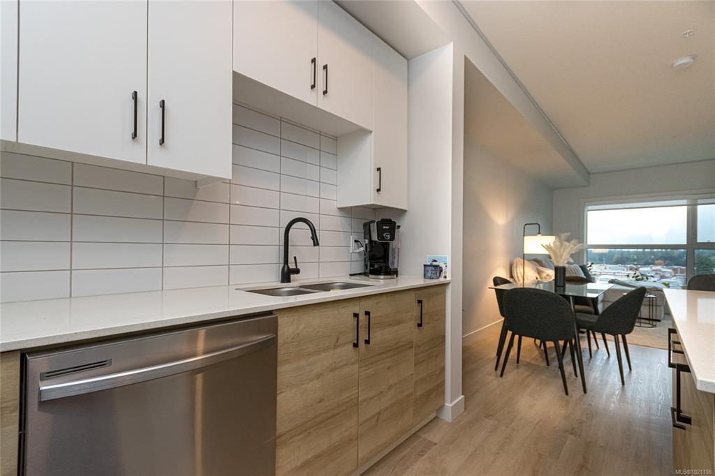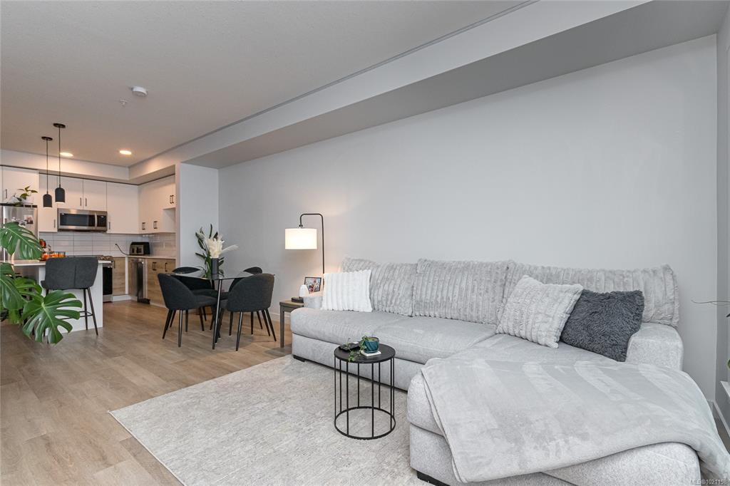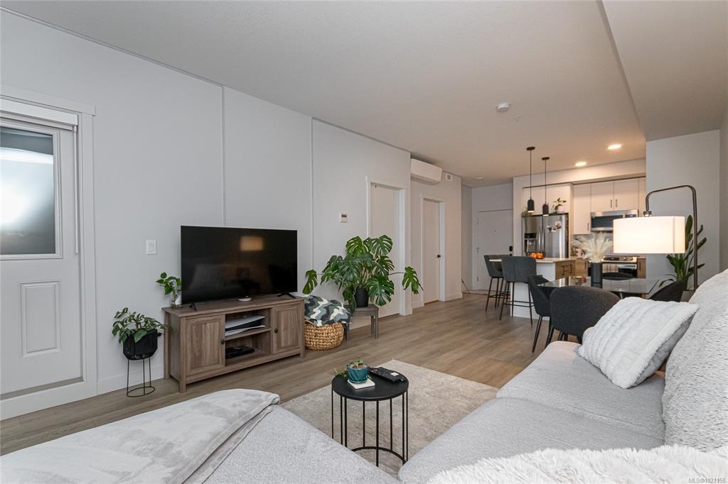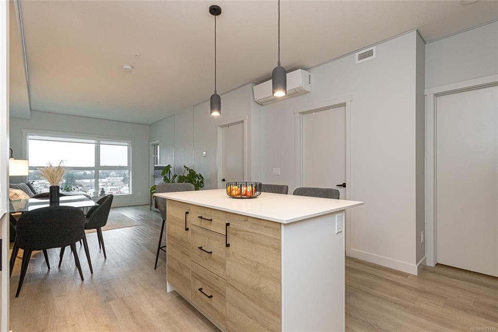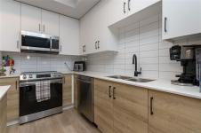 Discover modern living in this amenity-rich, pet- and family-friendly building. The kitchen features Samsung stainless steel appliances, soft-close cabinetry, and quartz countertops. The spacious living room opens onto a large deck for great outdoor living. Enjoy wide-plank flooring, a carpeted bedroom, and a bright 4-piece bath with a soaker tub. The home includes an in-suite laundry room with a leak detection system and plenty of storage. A designated underground parking stall and adjacent storage locker add convenience. Built Green with triple-pane windows and a heat pump for efficient heating and cooling. The strata offers top-tier amenities including a fitness center, indoor lounges, a dog run, community garden, recreation room, guest suite and rooftop deck. All this is just steps from coffee shops, restaurants, and daily essentials—offering the perfect mix of comfort and urban convenience.