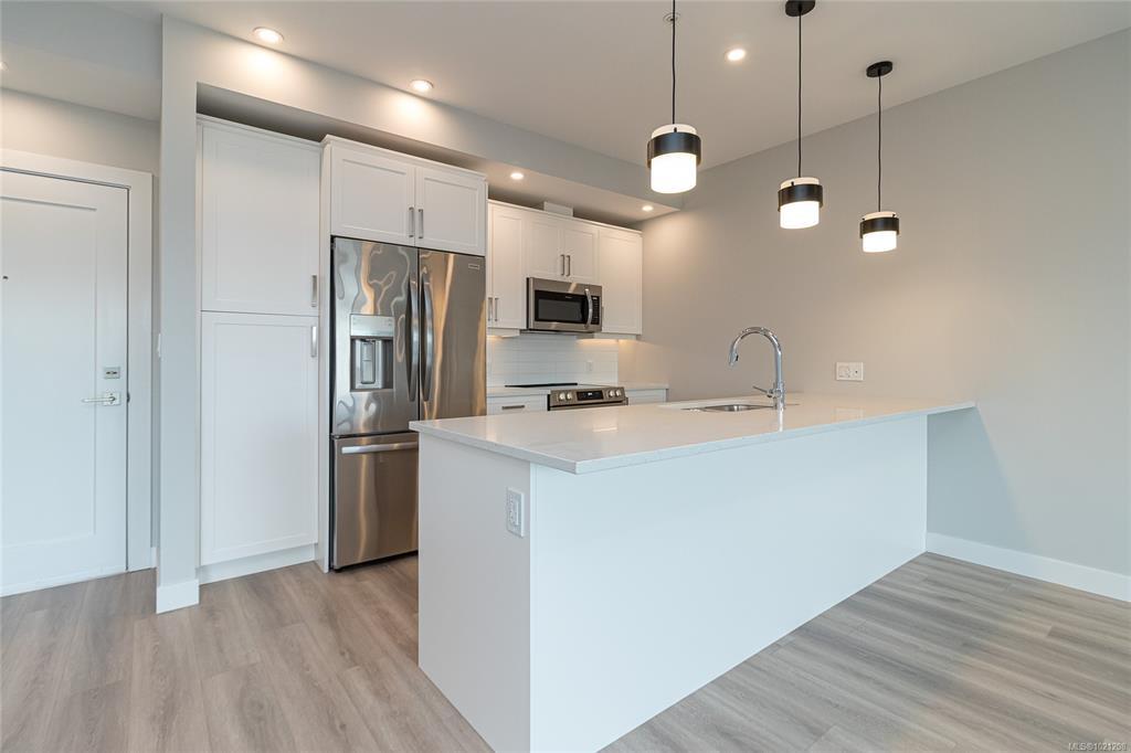 Introducing The Boardwalk, a modern collection of 24 spacious residences ready to move in to. Walk to EVERYTHING!! Incredible location on a quiet street across from the brand-new Belmont Market with Westshore Town Centre to the east & Langford Centre to the north. Suites feature something rare in today’s market...SPACE, averaging approximately 1000 sq.ft. per 2-bedroom suite, oversized sundecks that can handle a table and 4 chairs + BBQ plus bonus extra sound insulation in bedroom common walls & floors. Inside you'll find thoughtful spacious designs with 9' ceilings, a beautiful kitchen with quartz countertops & a stainless-steel appliance package. There’s a gorgeous Fireplace set in an accent wall, tiled entry & durable laminate wood flooring. The building features a welcoming grand tile foyer, interior storage lockers & convenient fenced dog run play area, as well as secured parking with video surveillance security & ample secured bike storage. Some pets & rentals allowed.