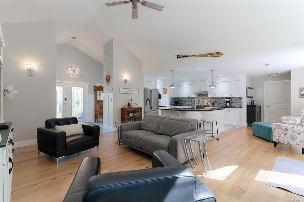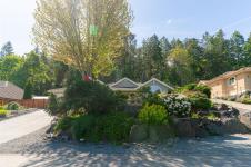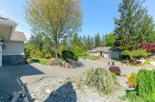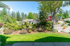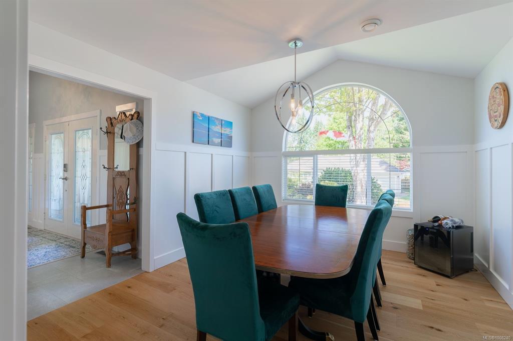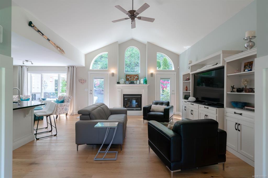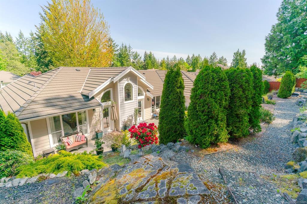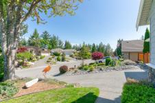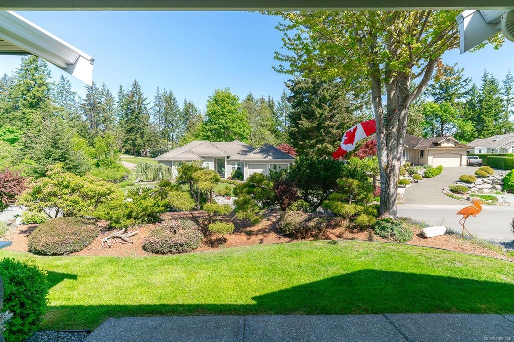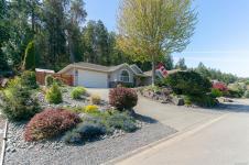 This Fairwinds executive rancher offers spacious main-level living in a peaceful neighbourhood just steps to the golf course. An expansive entrance & new engineered hardwood flooring set the tone for this upgraded, immaculate home featuring quality finishes, high ceilings & large airy rooms w/ expansive windows. Gourmet kitchen incl. granite counters & S/S appliances opening to a seating nook. Entertain with ease in the large dining rm w/ classic wainscoting or in the spacious living rm w/ cozy gas fireplace overlooking the beautiful yard. Primary bdrm features a W/I closet & fantastic 5pc ensuite w/ soaker tub & W/I shower. A thoughtful layout offers privacy w/ a second bdrm, den & 4pc bath on the opposite side. Backing onto crown land, the outdoor living areas incl. a private patio, established landscaping, irrigation, new stairs & new fencing. Offering the ultimate in active, coastal living with the Fairwinds Golf Course across the street & beaches & trails just a short stroll away.