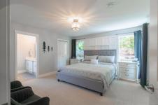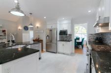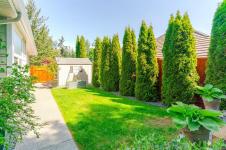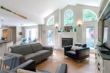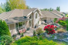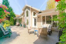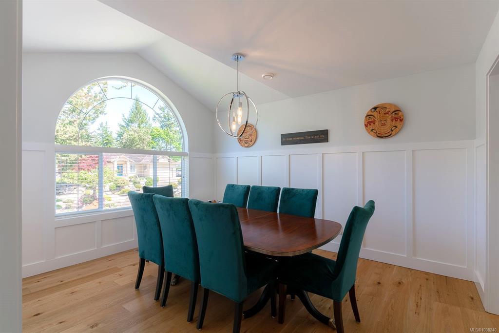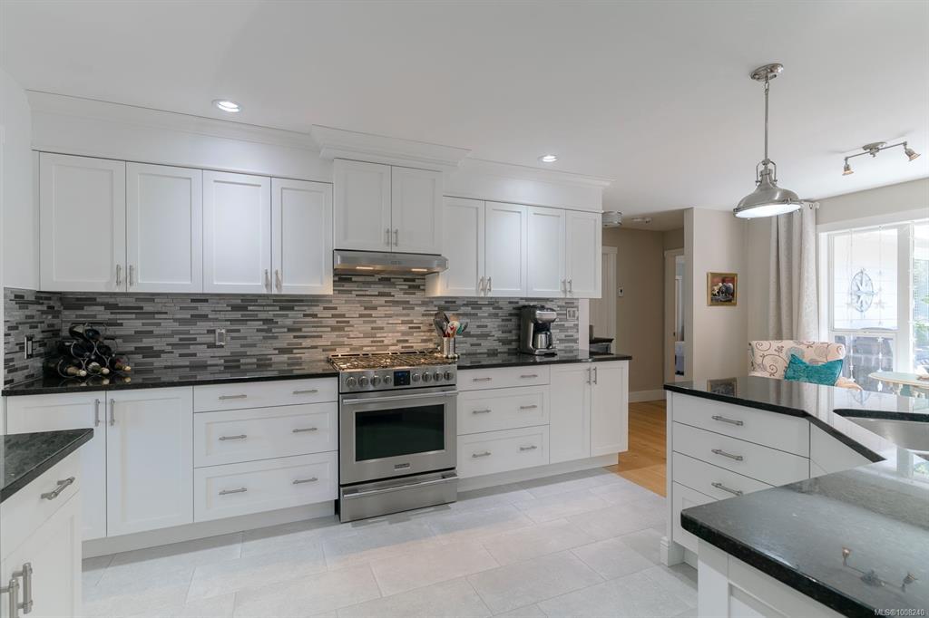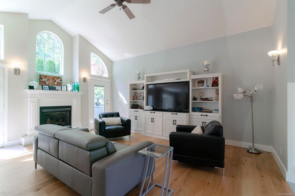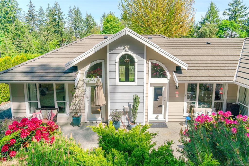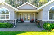 This Fairwinds executive rancher offers spacious main-level living in a peaceful neighbourhood just steps to the golf course. An expansive entrance & new engineered hardwood flooring set the tone for this upgraded, immaculate home featuring quality finishes, high ceilings & large airy rooms w/ expansive windows. Gourmet kitchen incl. granite counters & S/S appliances opening to a seating nook. Entertain with ease in the large dining rm w/ classic wainscoting or in the spacious living rm w/ cozy gas fireplace overlooking the beautiful yard. Primary bdrm features a W/I closet & fantastic 5pc ensuite w/ soaker tub & W/I shower. A thoughtful layout offers privacy w/ a second bdrm, den & 4pc bath on the opposite side. Backing onto crown land, the outdoor living areas incl. a private patio, established landscaping, irrigation, new stairs & new fencing. Offering the ultimate in active, coastal living with the Fairwinds Golf Course across the street & beaches & trails just a short stroll away.