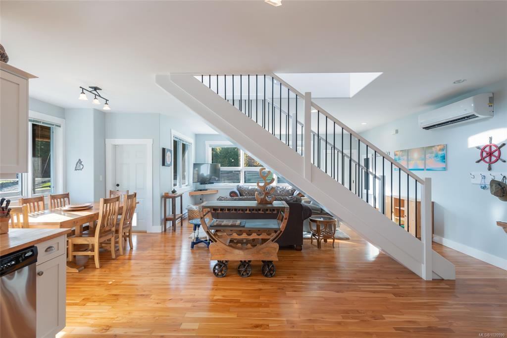 Discover this beautifully crafted 3-bedroom, 3-bath West Coast Contemporary home set along the peaceful shores of Sproat Lake. Step into an open-concept living space with 9 ft ceilings and rich teak flooring that brings warmth and elegance throughout. The kitchen features maple butcher block counters, a farmhouse sink, and easy access to a spacious deck perfectly suited for entertaining. The primary suite includes an ensuite and walk-out to a balcony offering stunning views of the lake and surrounding mountains. Sitting on a .37-acre fully fenced lot, this property offers ample yard space, a detached double garage, plenty of parking & massive 6 ft high crawl space. Enjoy the private shared dock with your own boat slip, ideal for refreshing summer swims, or quiet morning paddles. A 20-foot Bennington Pontoon boat may also be negotiated with the sale (Video available. All measurements approx., must be verified if important.).