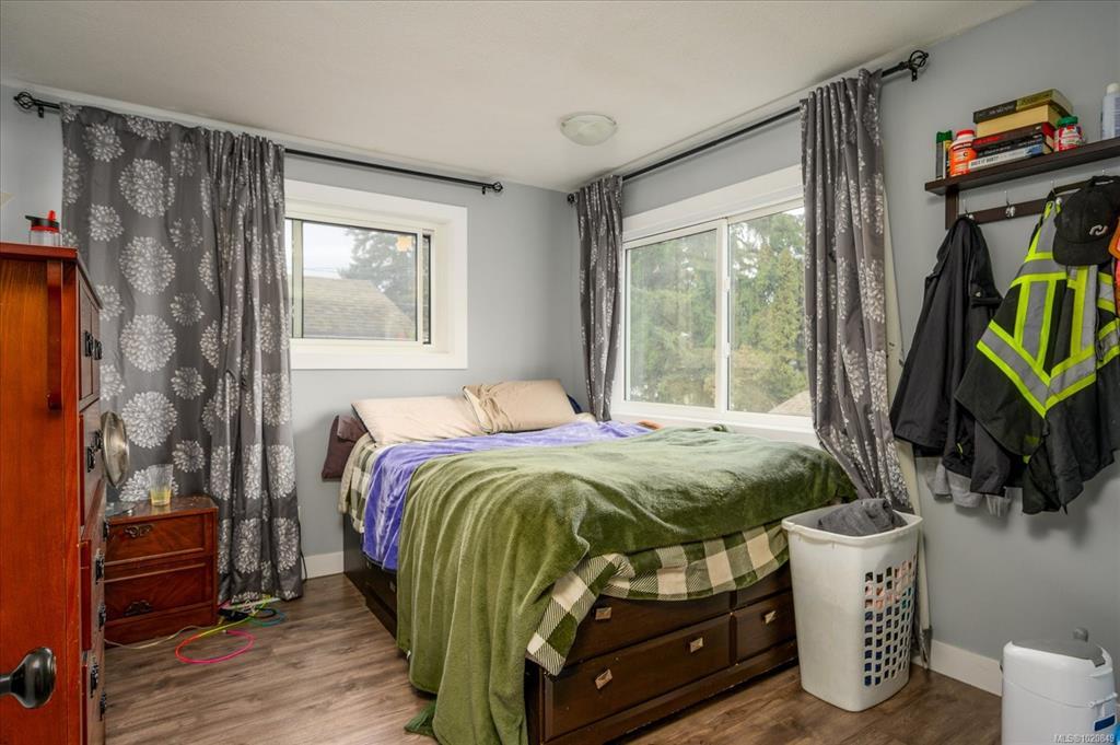 Charming and versatile 4-bedroom home in Central Nanaimo offering over 2,200 sqft of bright, welcoming living space. The main level features high ceilings, updated flooring and a refreshed kitchen. The primary bedroom and beautifully renovated bath with a dual-head walk-in shower complete the main floor. Upstairs offers a spacious bedroom with 3-pc ensuite plus a bonus room ideal as an office or extra bedroom. The finished lower level provides excellent flexibility with a second kitchen, full bath, bedroom and large living area with it's own private entrance. Recent upgrades include a new roof (1 year) and new windows (2 years). Situated on a corner lot with lane access, this property includes ample parking, RV space, a large deck, garden area, fire pit and storage shed. Close to shopping, recreation and all amenities. This one has so much to offer—come see the value for yourself!