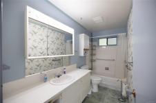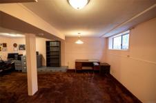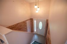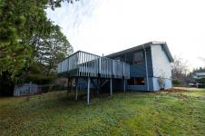 The upper level features laminate flooring throughout, a bright and spacious kitchen, and direct access to a large deck with dog-run access—perfect for outdoor living. Three comfortable bedrooms and a full bathroom complete the main floor.