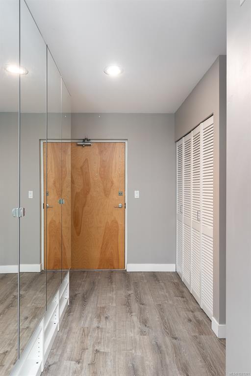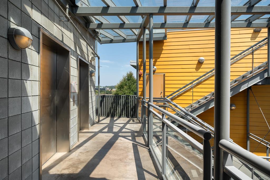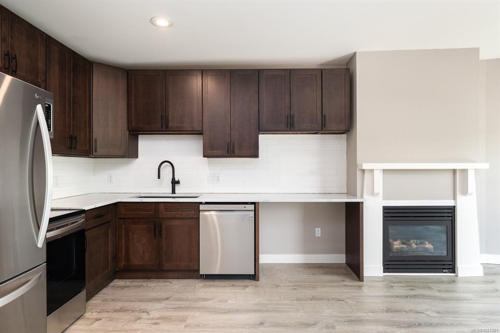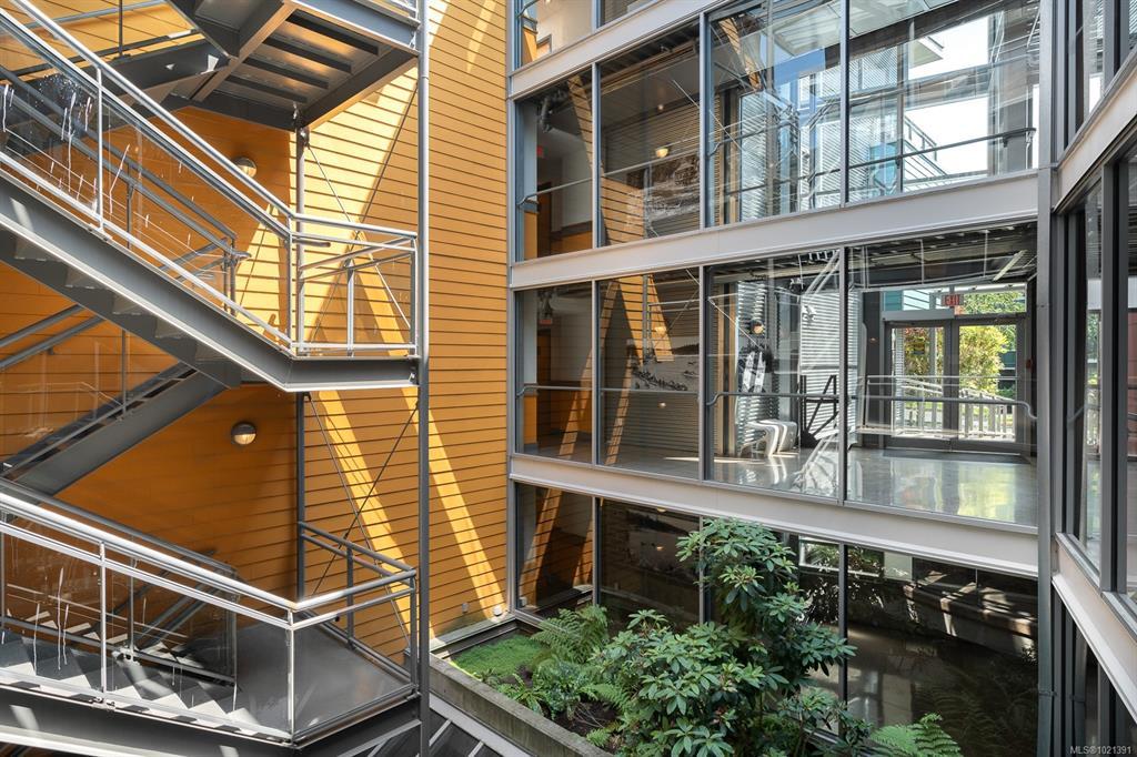 TOP FLOOR at this remarkable building with an inside/outside atrium-like appeal in the renowned "Railyards" community. This 448 sqft renovated bachelor suite is a perfect move-in-ready first home. Kitchen w/ new quartz counters, tile backsplash, LG appliances, wood cabinets w/ WORK-FROM-HOME OFFICE NOOK - 3pc bath w/ new heated floors, glass frame shower, toilet, tile - wide-plank vinyl flooring throughout, floor-to-ceiling storage units, and a gas fireplace (gas included in condo fees). Includes underground parking spot w/ bike rack, storage locker, and optional kayak storage. An unbeatable lifestyle location: The Gorge Waterway for paddle boarding, kayaking, and a short walk to downtown Victoria. 2 dogs or 2 cats, no size limit. Easy bike access w/ Galloping Goose to many areas of Victoria, including UVIC. Just steps to bus routes for UVIC & Camosun College. Truth Gym, Cafe Fantastico, Brown’s, and all other shopping steps away.
