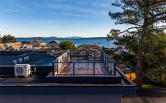 A statement in modern coastal luxury, this exceptional new build rests on a 7,244 sq ft lot in sought-after Sidney by the Sea. Located on a quiet cul-de-sac, just steps to the Lochside oceanfront promenade and minutes to the iconic Beacon Ave, this home offers an elevated and walkable lifestyle that's next to none. Expansive windows & 12' ceilings fill the Southern exposed great-room with abundant natural light. Boasting a refined gas fireplace & easy access to the beautifully landscaped & fully fenced yard, it's the perfect focal point of the home. A chef-inspired kitchen showcases high-end appliances, custom millwork and premium finishes. The versatile main-floor flex room adapts effortlessly as an office, media space, fitness studio or a comfortable 4th bedroom. Upstairs, a serene primary suite features soaring ceilings and a spa-inspired ensuite. A private rooftop patio captures sweeping ocean views and is ideal for elegant entertaining.