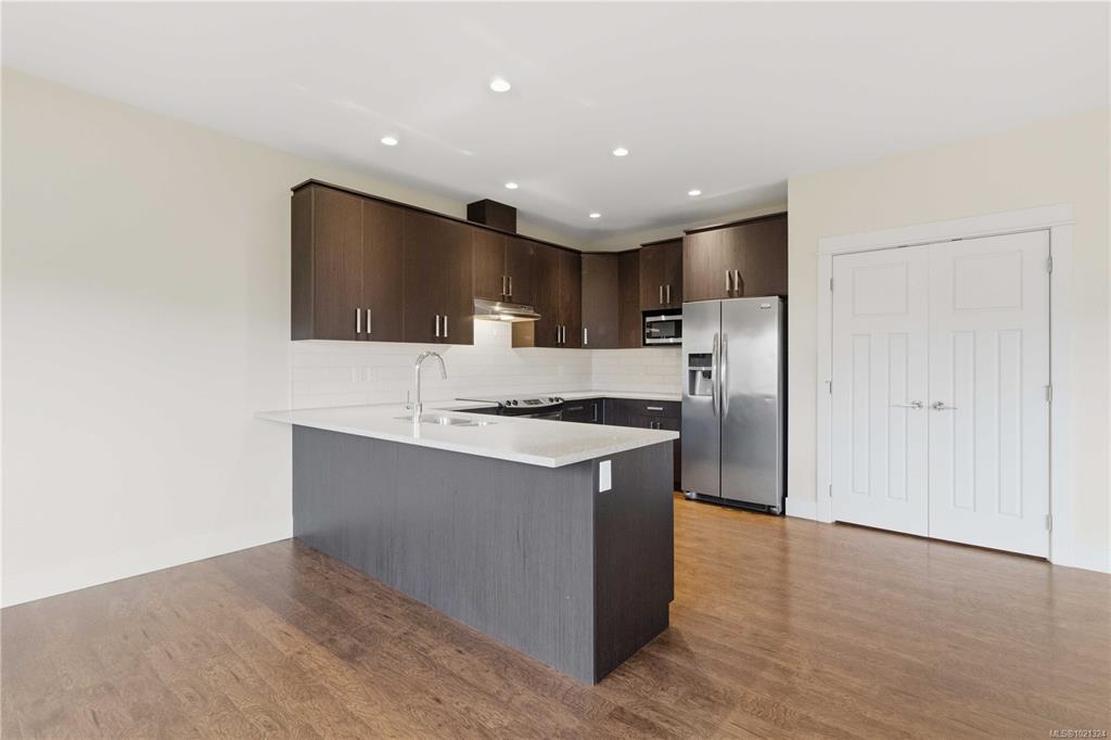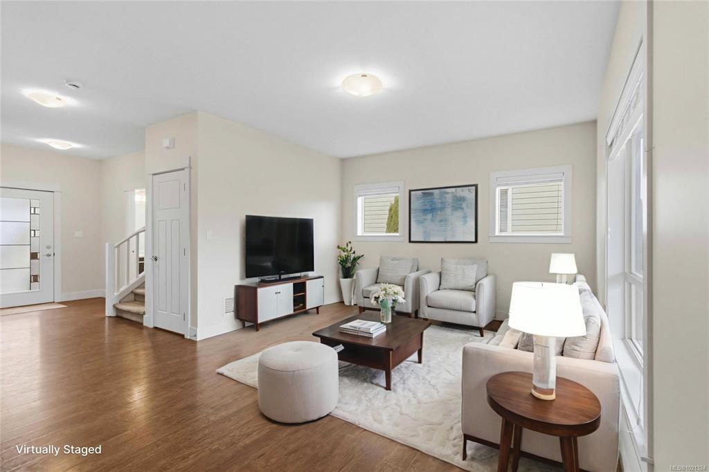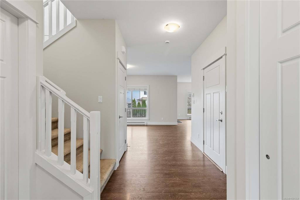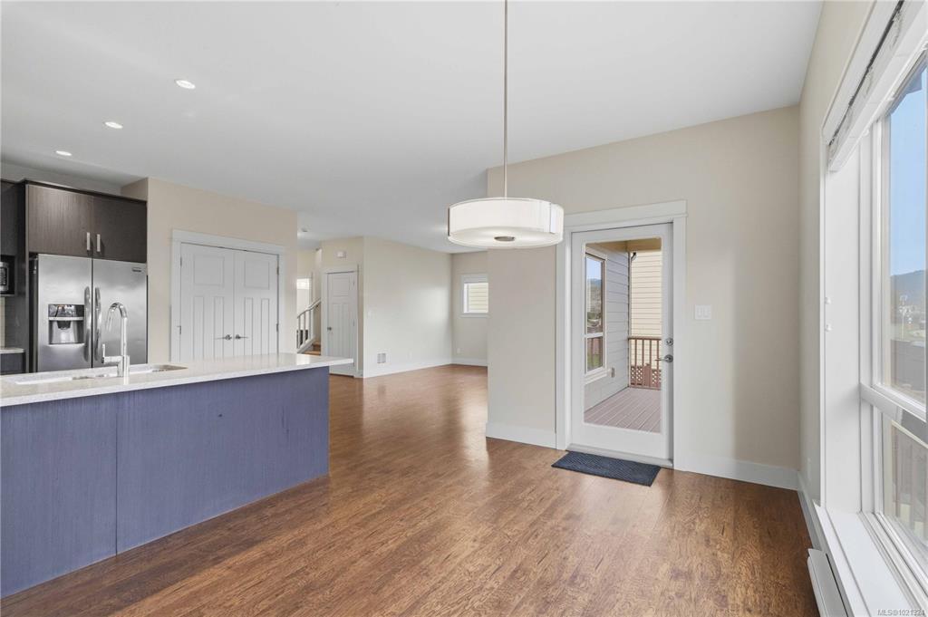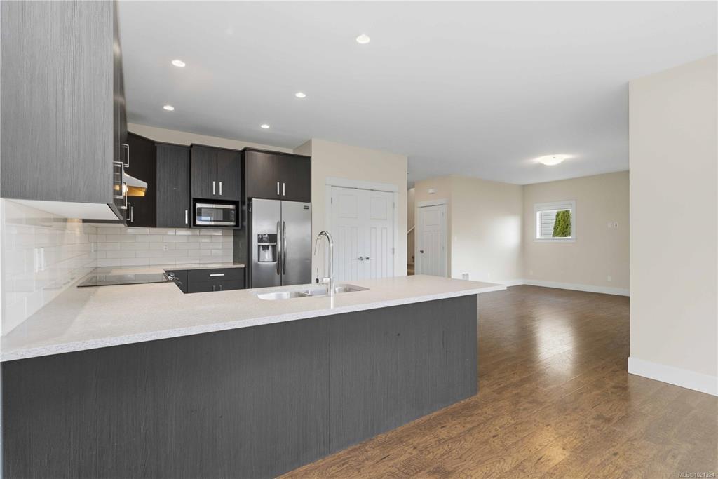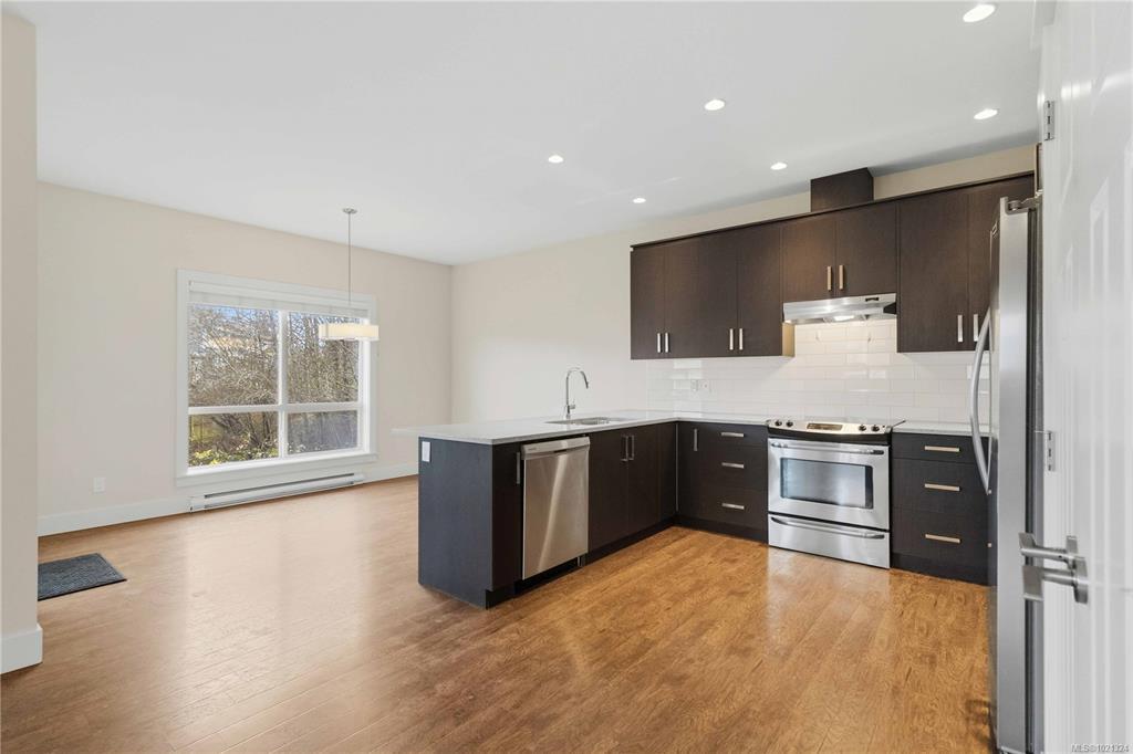 THE PERFECT, FAMILY FRIENDLY FLOOR PLAN! 2015 build, 4 bedroom (all on one level), 3 bathroom, 1769sf, end unit townhouse in desirable Townsend Park Estates bordering John Phillips Park & Stickleback Trail. Conveniently located just a short stroll to Sooke Town Centre, parks, schools, library, shopping & harbour. Bright, open floor plan with large picture windows & 9ft ceilings. Chef's kitchen w/quartz counters & peninsula w/breakfast bar, dual sinks & pantry. Inline dining room is perfect for family dinners & opens thru a French door to a covered deck w/stairs down to sunny, SE facing, fenced/gated yard. Generous living room & 2pc powder room complete the main level. Upstairs there are 4 spacious bedrooms including the primary bedroom w/walk-in closet & 5pc ensuite, as well as a 4pc main bath & laundry room! Bonus: Attached garage w glass paneled garage door, 1 adjacent parking spot (LCP) & a huge, mostly standing height crawlspace/ basement! Pets & rentals allowed. Outstanding value!