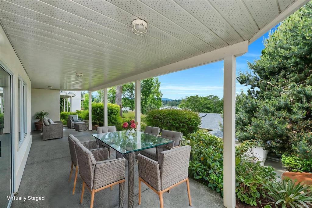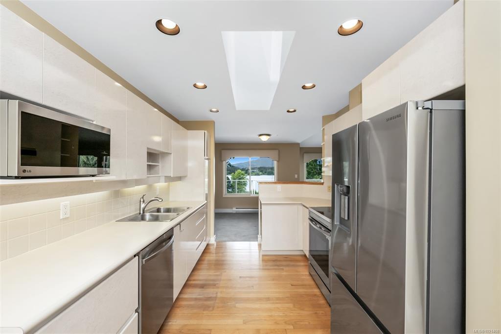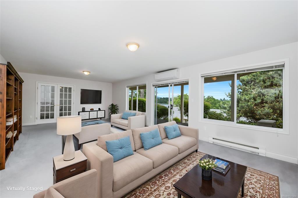 This 2718 SF, main level entry townhome, with walk out lower level is perfect for those looking to downsize from a single-family home but still wanting space for visiting friends & family & hobbies. This elegant home is an end unit with beautiful Quamichan Lake/Mount Prevost views, set in a premium lakefront development. The home has been very well maintained by the current owner & has a great floor plan with large, bright kitchen with eating nook, formal dining & entertainment sized living room with vaulted ceiling & propane FP. The large primary bedroom has a door to the large, redone, view deck & a 5 piece ensuite with soaker tub & separate shower. There is a generous second bedroom on the main floor with 2 closets plus a 3 piece main bathroom with a walk in shower. The lower level features a recreation room, third bedroom, den & full bathroom plus storage. The common property enjoys a gazebo & dock. Recent updates include 3 ductless heat pump heads and new kitchen appliances.