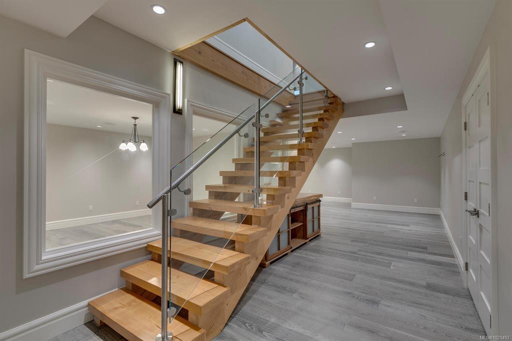A custom ranch-style home sits on a private 1.079-acre lot backing onto parkland and offers more than 7,015 sq ft of quality living space. Built in 2018 and maintained in near-new condition, the 3,331 sq ft main floor includes a living, dining, family, mud rooms & foyer, modern kitchen, prep kitchen, three bedrooms, three and a half baths, and laundry. The fully finished 3,244 sq ft basement includes a media, wine, utility rooms, gym with a roughed-in sauna, two bedrooms, large recreation areas, and two full baths, offering plenty of flexibility for family or guests. A 440 sq ft upper level provides extra living or office space while keeping the rancher feel intact. Features include Hardi-plank siding, wood-frame construction, quality windows, a triple garage, two fireplaces, a heat pump, on-demand hot water, central air, tinted windows, electric blinds, a built-in vacuum, and in-ground sprinklers. Custom landscaping, patio with a hot tub complete this executive property.