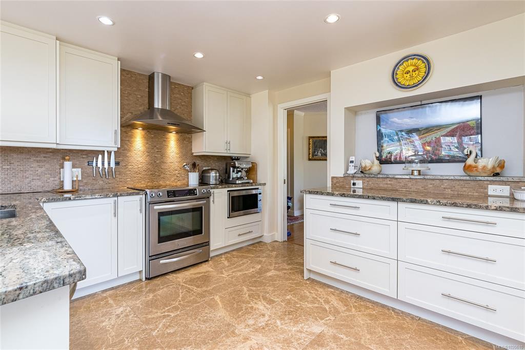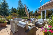 Nestled within the exclusive gated Wedgewood Estates, this stunning 3-bedroom, 3-bath home offers over 2,700 sf of beautifully finished living space plus a 1,332 sf sunny terrace, an outdoor oasis with fireplace, ocean views, and exceptional privacy. The spacious living room with cozy fireplace is ideal for entertaining, complemented by a large dining room and an updated kitchen flowing into an inviting family room. A unique layout places generous bedrooms in separate wings for optimal privacy. The primary suite features a 5-piece ensuite and walk-in closet, while the opposite wing offers a 4-piece ensuite and an additional bedroom or den. Added perks include in-unit laundry, two secure indoor parking spaces with EV rough in, loads of storage in suite plus a separate storage locker, and access to a clubhouse with pool, hot tub, sauna, and games room.