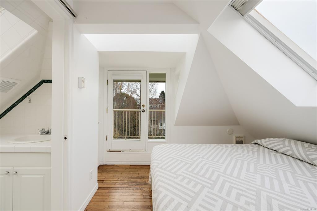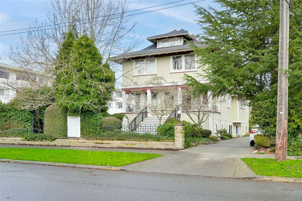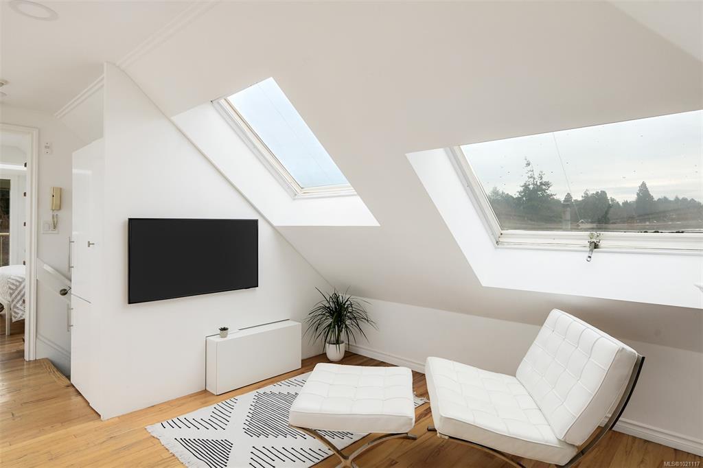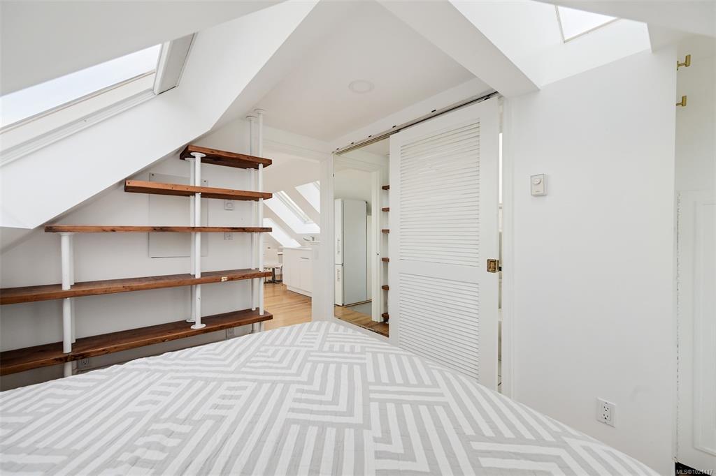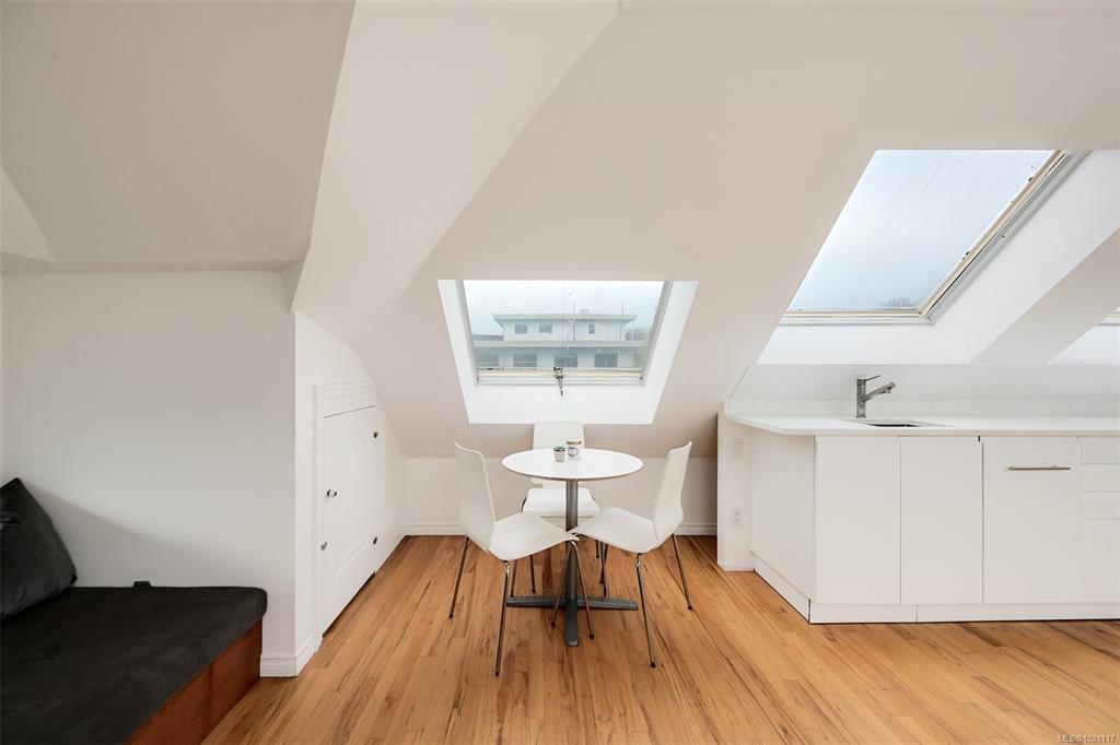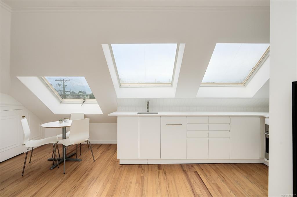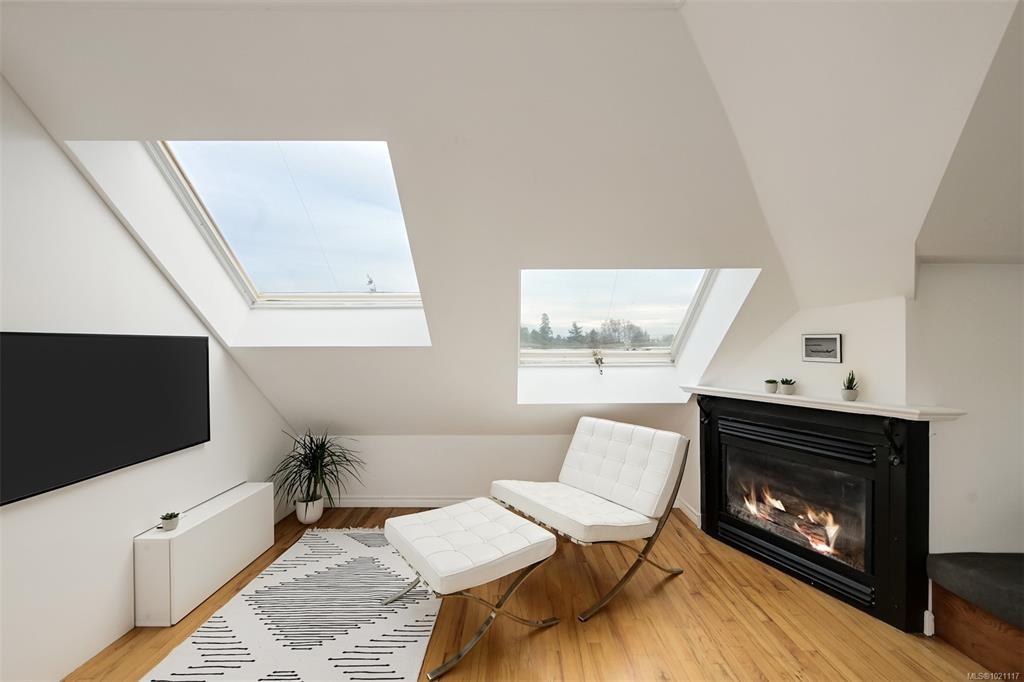 Discover a one of a kind, unique top-floor loft in the heart of Fairfield, just steps to Cook Street Village. This bright and stylish one bedroom, one bathroom condo blends historic charm with modern touches, featuring vaulted ceilings, multiple oversized skylights, wood floors, and a cozy gas fireplace. Updated kitchen with plenty of counter space, thoughtful custom built-ins, including a window seat and clever entry storage, maximize space and functionality. Enjoy your private south-facing sundeck with sweeping city and mountain views. Set in a 1909 character building that was fully restored in 2016, brimming with old world charm, plenty of craftsman details and lovely front gardens. With in-building laundry, parking, storage locker, bike parking,a walkable location close to numerous parks, cafés, restaurants, boutique grocers, transit, bike lanes and downtown Victoria, this is a standout opportunity for first-time buyers, downsizers or investors.