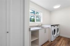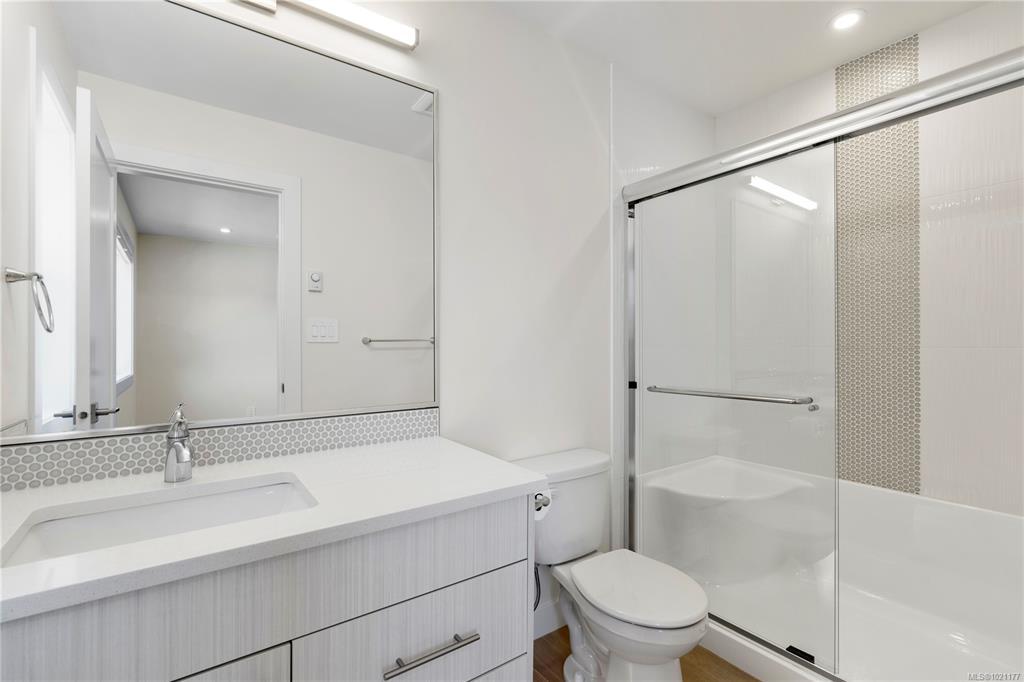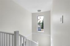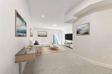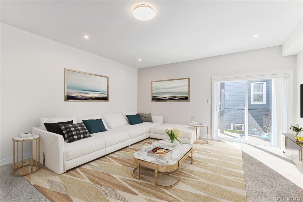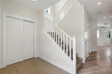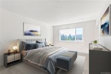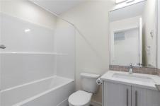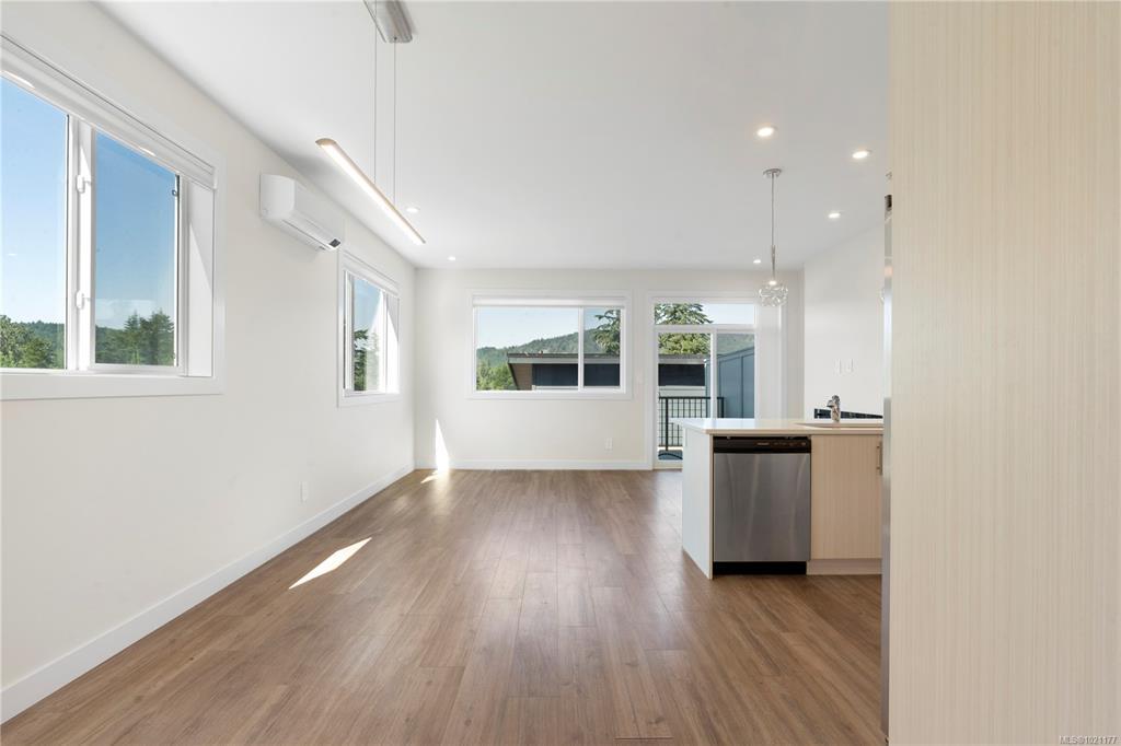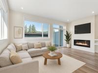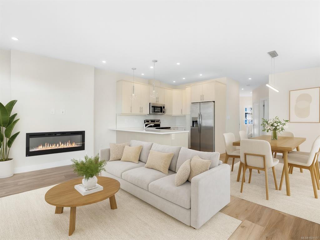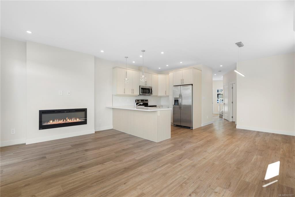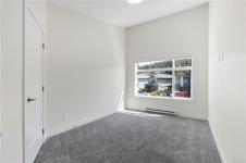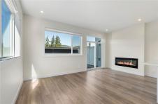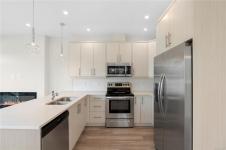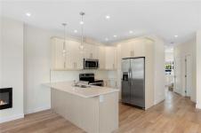 Welcome to this large, back corner, duplex-style townhome on the end of a quiet cut de sac! You'll be impressed by the thoughtful design & storage in this home. The home has 3 bedrooms, 3 bathrooms and a HUGE rec room with outdoor access. Featuring wide stairwells, 9' ceilings on main & large windows. Enjoy the bright custom designed kitchen's contemporary cabinetry, quartz counters, tile backsplash, undercabinet lighting & full SS appliance pkg incl fridge w ice/water. Other features include a laundry room, heat pump upgrade, modern 50" linear electric FP in living room; powder rm on main w/ quartz countertops; & stylish wide plank wood laminate flrs on main floor. Spacious primary bedroom boasts 4 pc ensuite incl. tile surround tub, tile floor & a floating vanity w/ motion lights below. Energy efficient gas fired wall furnace & on demand hot water heating! This home features great views from the primary bedroom & a private fenced yard. Near new, vacant & MOVE IN READY!!