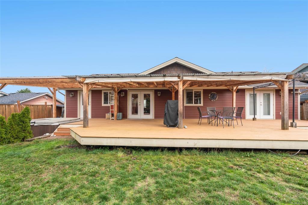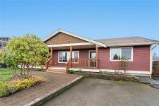 Charming Central Parksville Rancher – Walk to Downtown, Stroll to the Beach! Spacious 3 Bed/2 Bath Rancher on a .21-acre lot featuring a one-level layout, Bedrooms on opposite sides for privacy, a skylight and generous use of glass for natural light, a hot tub, two decks, a sunny fenced yard, and ample parking for a trailer or RV. Located on a quiet no-thru street, it’s steps from shopping, dining, banks, and Parksville’s boardwalk and beach. East-facing covered front deck, open-concept Kitchen, Living, and Dining Room with new hardwood flooring, cathedral ceiling, and nat gas fireplace. Skylighted Deluxe Island Kitchen offers shaker-style cabinetry with crown molding, and ample counter space. French doors lead to a large back deck with hot tub and gas connections, and a fully fenced west-facing yard. Primary Suite with deck access, walk-in closet, and ensuite. Two more Bedrooms, 4 pc Main Bath, and Laundry/Mudroom complete the home. Great extras, visit our website for more info.