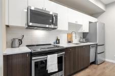 Welcome to life at the Railyards, Victoria’s favourite waterfront community. Suite 404 is a bright, modern 1-bedroom home in the sought-after Railyards community, perfectly positioned to capture warm afternoon and evening light. This west-facing condo is all about lifestyle, light, and unbeatable walkability. The open layout maximizes space, with large windows, a stylish kitchen featuring quartz countertops, stainless steel appliances, an eating island, and in-suite laundry with a new washer and dryer. Enjoy a private balcony made for sunsets and relaxed BBQs. The building offers secure underground parking, separate storage, bike and kayak storage, plus a shared rooftop patio for entertaining. Pets are welcome and rentals are unrestricted. With immediate access to the waterfront for paddling, cycling, and scenic walks, and only minutes to downtown, the Galloping Goose, and nearby shops and cafés, this is Victoria living at its best.