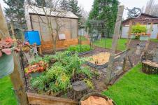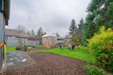 Cute as a button! In this price point it's rare to find a move in ready single family home, but here it is. 1 Bedroom plus Den, 1 Bathroom home. Cozy and spotless with an extremely functional layout, offering ample living area, kitchen with counter space, cabinetry and dining, including an office nook. The Den is currently in use as a laundry utility room, but creativity allows for many other options. The star of this listing is truly the property, a private fenced gardeners paradise. The flat almost 8700sqft lot with mature trees features lane access (allowing future potential of carriage home), greenhouse, chicken coop, fire pit area, rv parking and meticulously maintained gardens. Further items to note: basement storage/workshop for bikes, kayaks, tools etc. laundry hookup in the basement and two covered entries to the home. Already prepped for pets with secured fencing. Enjoy this convenient central location within walking distance to shopping, transit, schools, parks and trails.