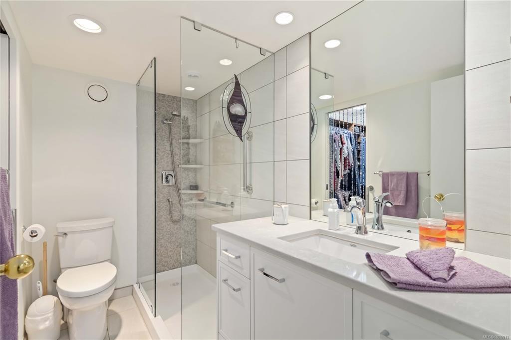 Gorgeous ocean views from this updated 2-bedroom condo in Sea West Quay, just a short walk to amenities and Downtown Victoria. This well-run, seaside building is pet friendly, with no age restrictions and allows rentals. The spacious layout features a renovated primary walk-in closet with custom built-ins, a fully updated bathroom, newer flooring throughout, a bright kitchen, in-suite laundry, a second bedroom, and an open living/dining area with access to a view balcony. Quiet unit with no one below and only one shared wall. Includes secure underground parking and separate storage. Amenities include an exercise room, billiards room, lounge, kayak & bike storage and workshop. The building also has a resident caretaker which owners find very helpful having around. Steps to transit, shops, and the Songhees Walkway. Book your viewing today!