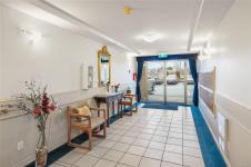This top-floor 2-bedroom, 2-bathroom condo in Waterford Place offers an ideal combination of comfort and location. Set directly across from Parksville Beach and the boardwalk, it features a bright, spacious living room with crown molding and a gas fireplace. You are sure to appreciate the inviting eat-in kitchen equipped with stainless steel appliances and the covered west-facing balcony perfect for dining al fresco. Both bedrooms are generously sized, and the primary suite includes a walk-in closet with built-ins and an ensuite complete with a deep soaker tub. Waterford Place is a well-maintained, sought-after building where units like this are rarely available. Residents enjoy secure entry, elevator, underground parking, and a storage locker. All of this is just steps from the best Parksville has to offer: the beach, boardwalk, shops, cafés, dining, and downtown amenities. With no age restrictions and rentals permitted, this home is not to be missed!