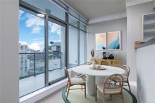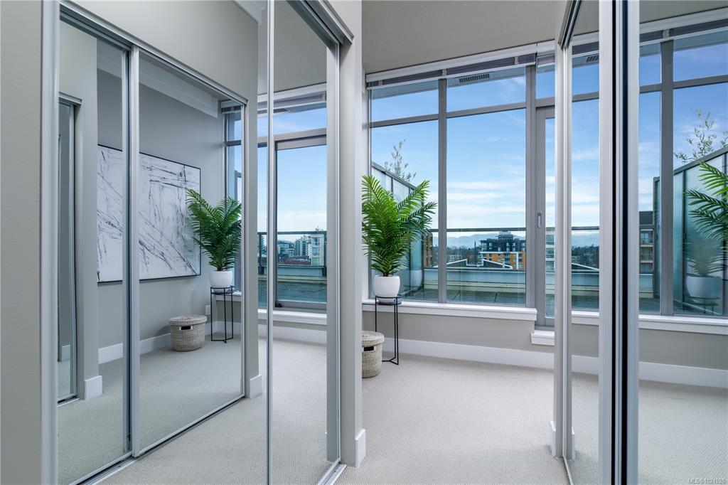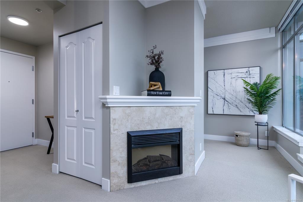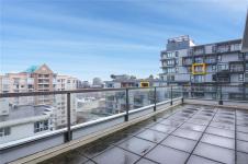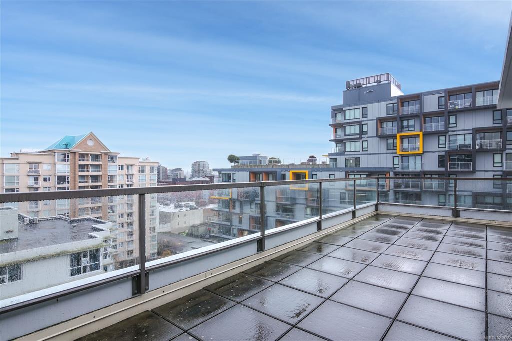 Welcome to Unit 903 at The Wave, a stylish top-floor, two-level home in a quality steel and concrete building. This 1 bed + den, 1.5 bath suite offers 9’ ceilings, open concept living with city and distant mountain and ocean views. The lower level features a full kitchen, dining area, livingroom with fireplace, den, 2 pc bath and patio for your BBQing. The upper level features a spacious primary bedroom with ensuite with great natural light and an incredible nearly 300 sqft private terrace for morning coffee, evening wine or entertaining. Pets allowed (see bylaws) and unrestricted rentals allowed (no short-term), plus secure underground parking and separate storage. The professionally managed building includes a fitness centre and rear courtyard. Live steps from great restaurants, shopping, grocery stores, the Inner Harbour, theatres including Capital 6 and the Odeon, and all the energy of downtown Victoria. A rare offering with exceptional outdoor space in a prime walkable location.