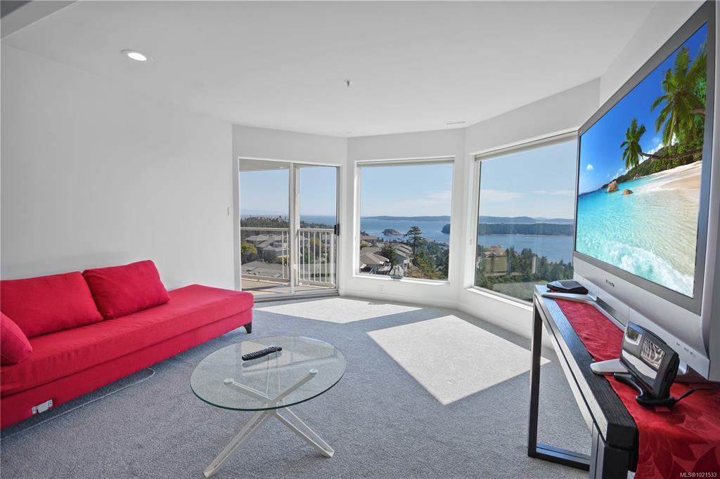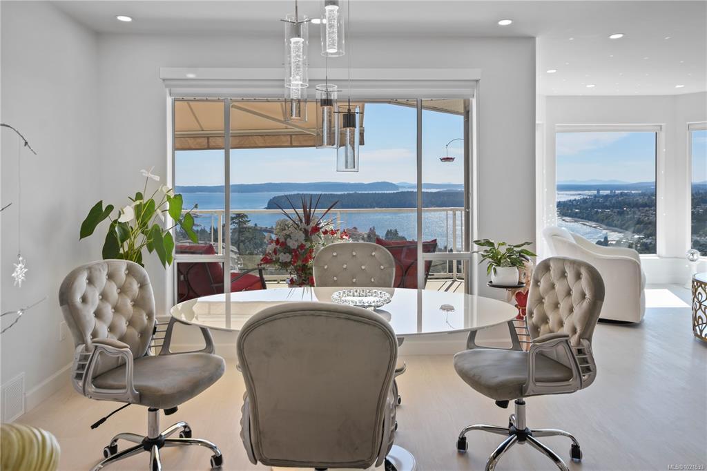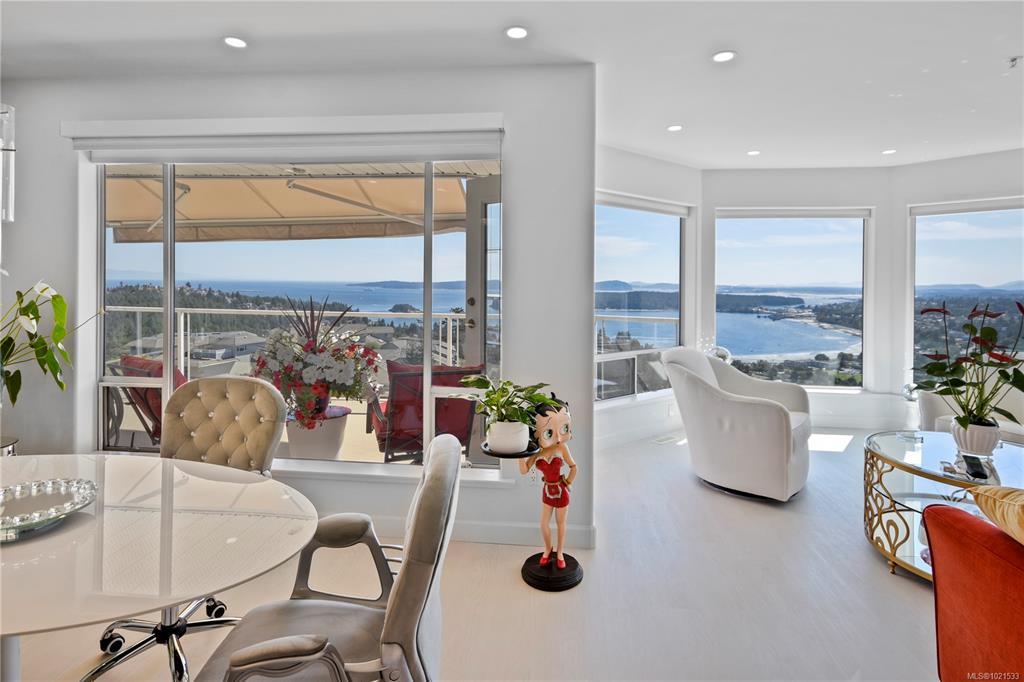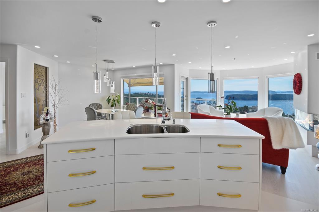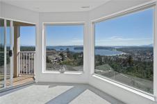 This exceptional condo has Nanaimo’s best views - the city, Departure Bay & the Coastal Mountains. A high-end total renovation including smooth ceilings, refined finishes, and premium materials establish an elegant, modern atmosphere throughout. The chef-inspired kitchen is a standout, featuring a Miele fridge-freezer, induction cooktop, and Miele range, all seamlessly integrated into custom cabinetry. The spa-inspired ensuite feels like a private retreat, complete with heated floors, a luxurious soaker tub, and a separate walk-in shower. Thoughtful smart upgrades elevate everyday living — including electric skylight shades, an automatic sunshade with wind override, EV charger readiness, and a 2019 heat pump/furnace for year-round efficiency. An elegant entry/laundry area, dedicated media room, wine storage, and additional flexible spaces deliver practicality that matches the home’s elevated style. With 2 bedrooms, 3 bathrooms, family room, this residence offers luxury & comfort.