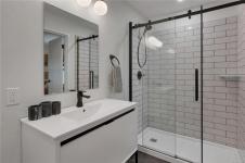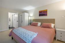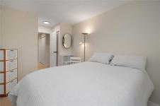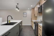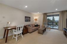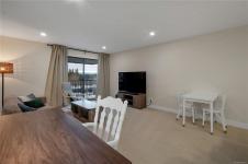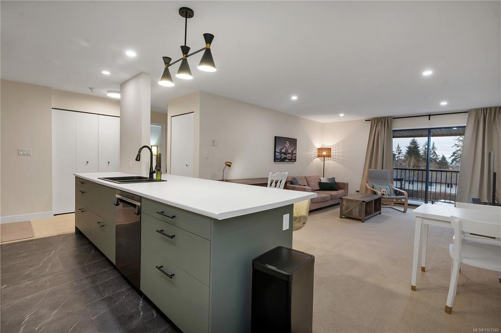 Stunning professional renovation completed on this condo, it is a MUST SEE!. You’ll love the beautiful modern new kitchen that features floor to ceiling cabinets, matte black appliances, and an oversized island with matching sink and faucet. Both bathrooms have been completely renovated, the former 2-piece ensuite has been expanded into a second full bathroom with walk-in shower, the main bath has been completely redone. Enjoy new luxury vinyl tile, carpet, baseboards, paint, baseboard heaters, lighting, and a flat finish ceiling in the main living area. This unit offers a spacious in suite storage and a covered south facing deck with beautiful mountain views. Ideally located in a quiet, central area within walking distance to shops and forested trails. Laundry on the same floor. Pet friendly, 1 cat or small dog and no age restrictions