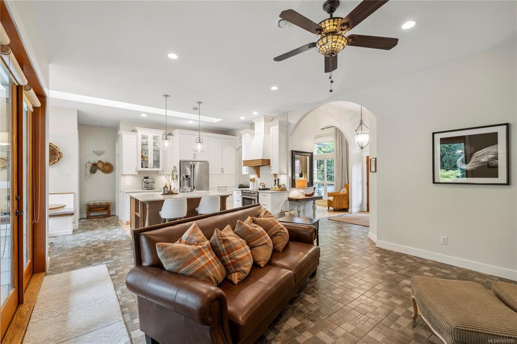 Experience refined living on this private two residence 1.1-acre Lantzville estate where timeless elegance meets modern design. The completely transformed 2,052 sq ft rancher impresses with soaring ceilings, a flowing great room, a bespoke kitchen with banquette seating and grand French doors opening to an expansive covered patio. A formal dining room and elegant study add sophistication, while the private primary wing offers direct patio access and a spa-inspired ensuite. Three additional bedrooms are thoughtfully positioned for privacy. The lush grounds feature manicured gardens, raised beds and sweeping lawns, creating a serene retreat. A luxurious two-bedroom carriage home, perched above a finished workshop boasts its own driveway, private patio, and exquisite finishes—ideal for guests, multigenerational living, or an executive rental. Every detail has been meticulously crafted for those seeking beauty, comfort, and effortless coastal living.
