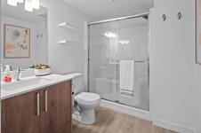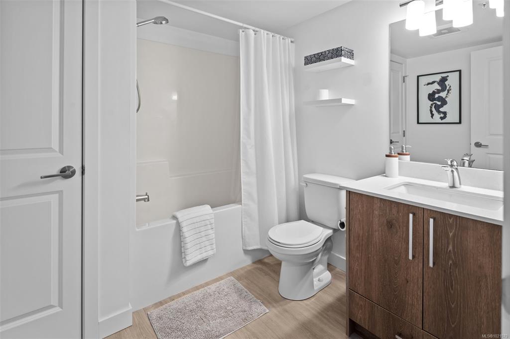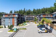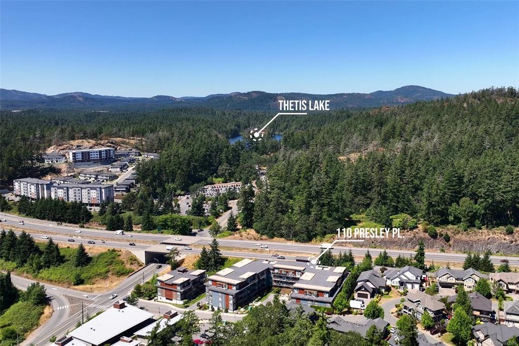 THETIS LAKESIDE – This sought-after 2019 building is known for its outdoor lifestyle appeal, direct access to Thetis Lake, and quick highway connections. This private, bright, east-facing third-floor 2-bedroom condo offers an ideal layout and one of the largest balconies in the building - perfect for BBQs and relaxing after a day on the trails. Interior features include quartz countertops throughout, walnut-veneer cabinetry, and upgraded high-end stainless-steel appliances. The oversized storage locker is located on the first floor. The pet-friendly building (no size limit for dogs) includes a 2nd-floor pet walk area, secure bike storage, two elevators (eliminating lobby waiting), and ample visitor parking. Thetis Lake and the Galloping Goose Trail are just steps away, with Costco and Millstream Village only minutes down the highway w/ quick access up island. A well-managed strata and vibrant community make this an exceptional place to call home.