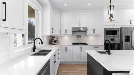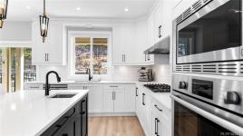 This beautiful home offers a spacious open floor plan with panoramic lake views from the front patio. The upstairs has 3 bedrooms and main-floor living, with direct access to the walk-out backyard—ideal for supervising children or entertaining. The backyard features a garden with an apple tree, raspberries, strawberries, and herbs. The walk-out basement includes a mudroom, large bedroom/gym/office, and a large flex space; perfect for a media room / rec-room for teenagers, an area to entertain guests, or as an in-law suite. A 1-bedroom mortgage helper with a private entrance generates $1500/month and is fully self-contained with appliances and a washer/dryer. Located in The Properties, just a 10-minute walk to Maple Bay Elementary, parks, and trails, plus close to local farms and artisan shops. Enjoy high-end living in nature’s heart. Reach out today to secure your dream home!