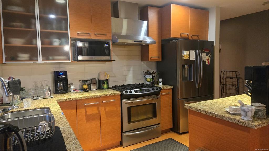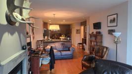 The suite features new hardwood floors, an expanded kitchen with granite eating bar, double sinks in the bathroom, and a gas range. Enjoy efficient heating and cooling with a heat pump, plus a spacious covered/uncovered deck with BBQ hook-up and Mount Benson views. Floor-to-ceiling bedroom windows and blue-tinted living room windows provide natural light and privacy.