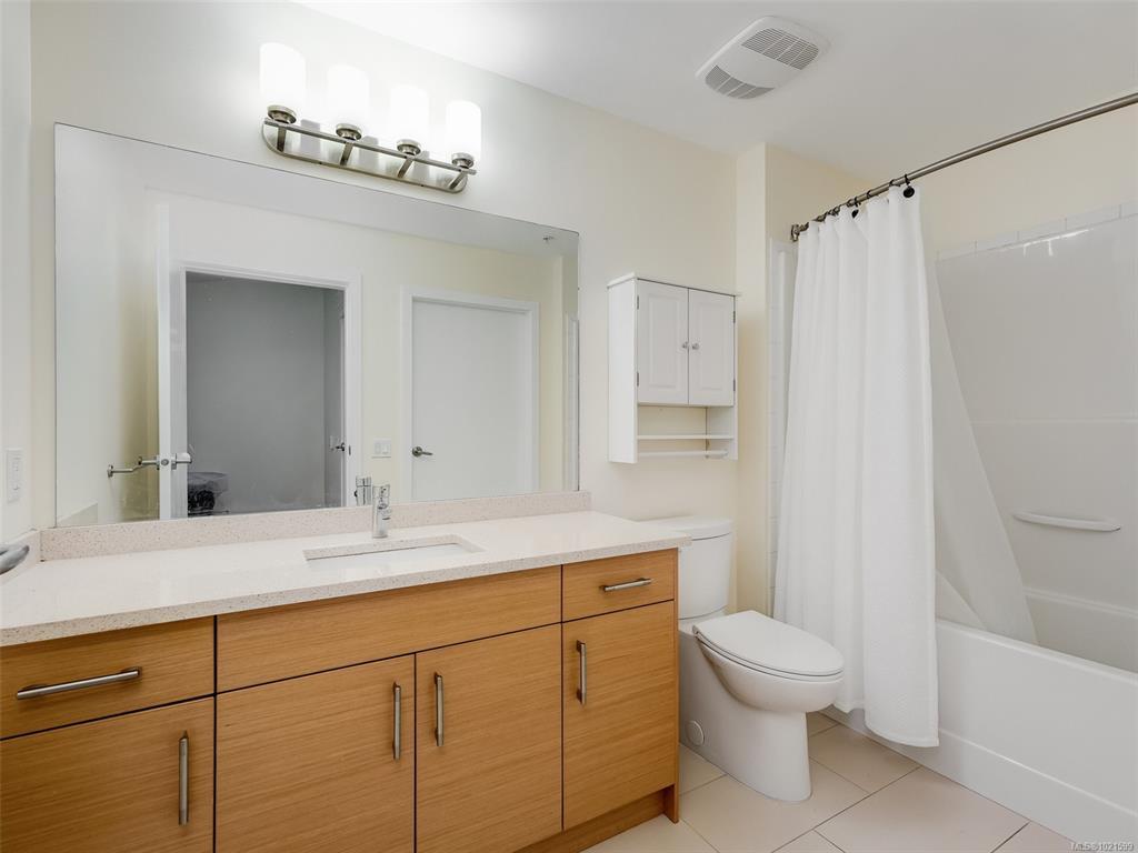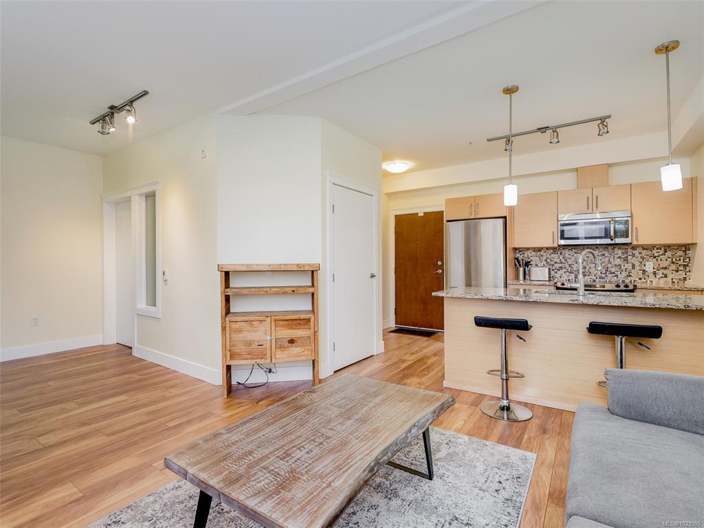 Welcome to Midtown Park! This bright and spacious 2 bedroom, 1 bath condo in an ideal convenient location offers easy access to all amenities, transportation, schools & recreation plus a café & Rutledge Park right at your doorstep. The many features of this suite include new laminate flooring throughout with economic geothermal radiant in floor heating, 9' ceilings with lots of natural light, gourmet kitchen with a new oven, stainless steel appliances and quartz counter tops. In addition, there is in-suite laundry (full size), huge covered deck perfect for all your outdoor entertaining, underground secured parking, separate unit storage locker and bike locker. All this in a well-run building where heat and hot water are included in the strata fees and rentals, children and pets are welcome! Don't miss the opportunity to call this place home and book your private appointment.