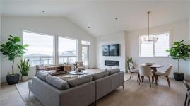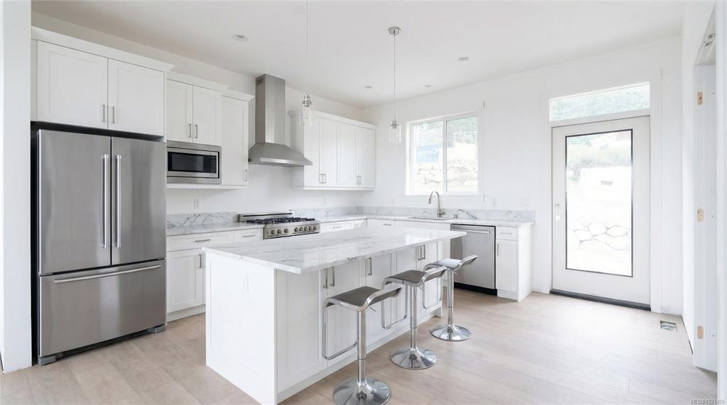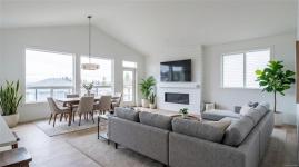 Another quality build by Topchord Construction built by Andrew Gardiner. This brand-new oceanview home offers 2,460 sq ft of living space plus a 380 sq ft double garage, a 1-bedroom legal suite, and a sunny southwest-facing yard. The main home features open-concept living/dining, a gourmet kitchen with quartz counters, stainless steel appliances, tile backsplash, and a sit-up bar. The upper level includes the primary bedroom with 5-piece ensuite, two additional bedrooms, a den, and a 4-piece bath. Enjoy a large oceanview deck and a covered rear patio. The ground floor includes the den/office, laundry, and a self-contained suite with separate entry, laundry, and a 4-piece bath. Additional features include vaulted ceilings, extensive windows, landscaping package, gas furnace (heat pump ready), and on-demand hot water. Located on a quiet dead-end street near beaches, amenities, and trails. Quick possession possible. (All data approx.; verify if important.)
