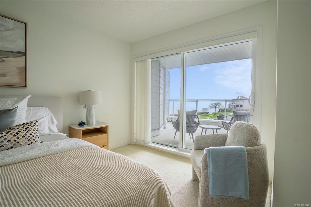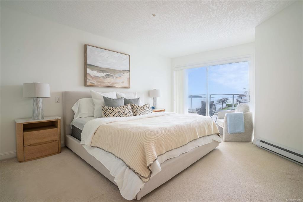Welcome to the Pinnacle of Waterfront Sidney living. This bright South Facing unit creates a warm atmosphere with stunning Ocean and Mountain views. With expansive windows, two skylights this beautifully designed 2-bedroom, 2-bath condo offers 1,257 sq ft in one of Sidney’s most walkable areas. The spacious living room with gas fireplace flows to the dining area and large kitchen with ample cabinetry, full-size appliances, and an eating nook. The second bedroom with French doors works as a guest room, office, or den. The primary bedroom features a walk-in closet and private 3-piece ensuite. Enjoy the covered balcony with views toward the waterfront. Additional features include in-suite laundry, a large storage room with deep freezer, and secure underground parking. This pet-friendly building offers secure entry, same-floor lockers, and gated parking. Steps from downtown Sidney, restaurants, shops, the waterfront boardwalk, Beacon Park, and the fishing pier.