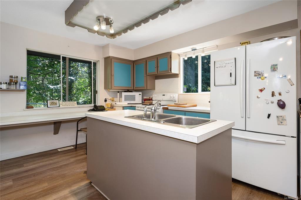 Charming countryside walk-out Rancher nestled on 2.11 acres of breathtaking natural beauty, this picturesque rancher offers the perfect blend of peaceful country living and modern comfort. Surrounded by soaring trees, scenic trails, fruit trees, and a serene pond, the property creates a private, tranquil oasis. The main level features an open-concept layout that invites you to relax and unwind. A cozy wood-burning fireplace anchors the spacious living area, while large windows flood the home with natural light and provide beautiful views of the surrounding foliage. The primary bedroom is conveniently located on the main level, complete with a walk-in closet and a 2-piece ensuite. Additionally, you’ll find two more bedrooms and a 5-piece bathroom. The walk-out level features a large bonus bedroom/family room with its own wood-burning fireplace and a 2-piece ensuite. A finished laundry room, workshop, and carport offering plenty of space for hobbies or additional storage.