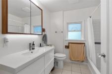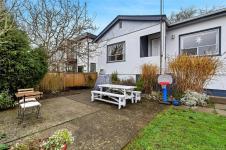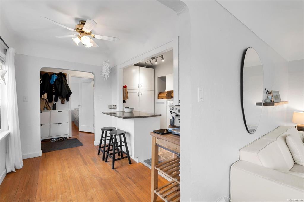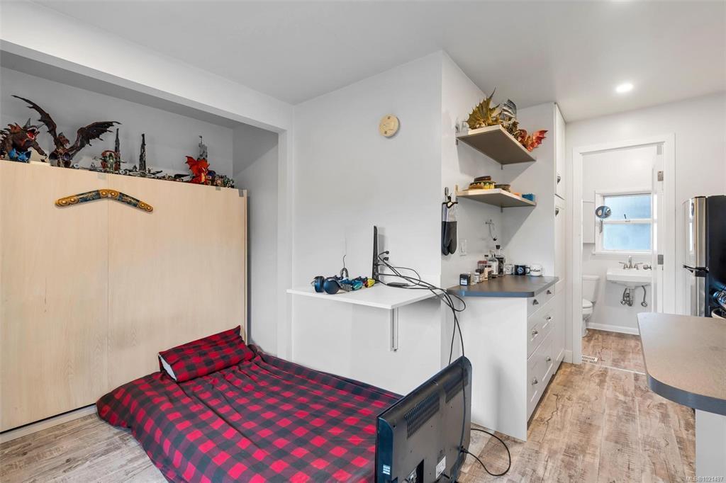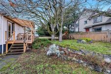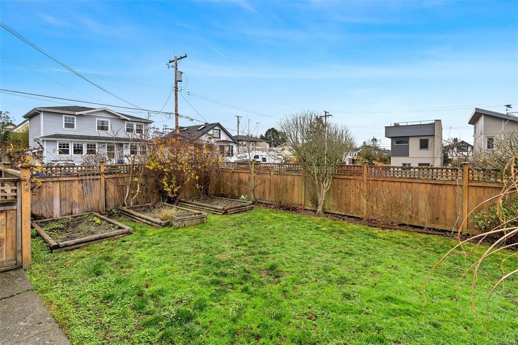 THE HOME you have been waiting for! 1334 Wood St is a super bright 2-bed, 2-bath home just a block from the ocean in beautiful and trendy Esquimalt. This 1948 charmer offers 1,111 sq ft of finished space, including an updated studio suite, plus 909 sq ft of unfinished potential in the basement. Original wood floors, coved ceilings, and a wood-burning fireplace create a warm, classic feel. South and east windows fill the living and dining areas with natural light. The kitchen features generous storage, floor-to-ceiling pantry, ample counters and a peninsula open to the eating area. Bedrooms are privately tucked away with a spacious 4-piece bath between them. South exposed fully fenced yard as well! The studio suite enjoys its own yard and strong rental history. Secure future potential development as well, as the home is set on two legal lots and is surrounded by new homes. This property is an excellent starter or investment opportunity, and really is the perfect balance of both!