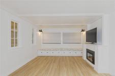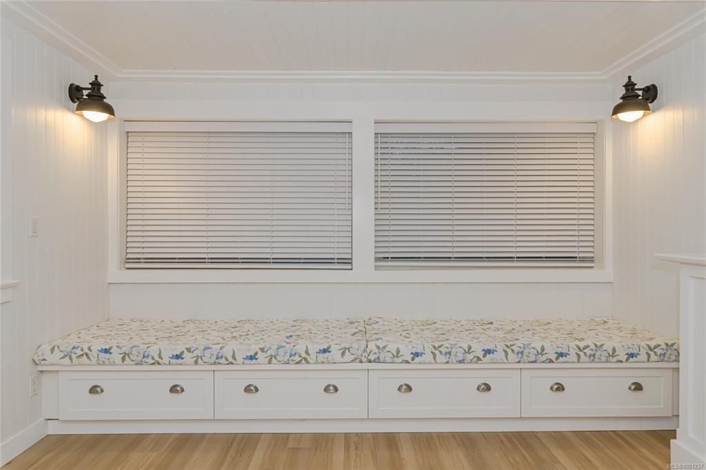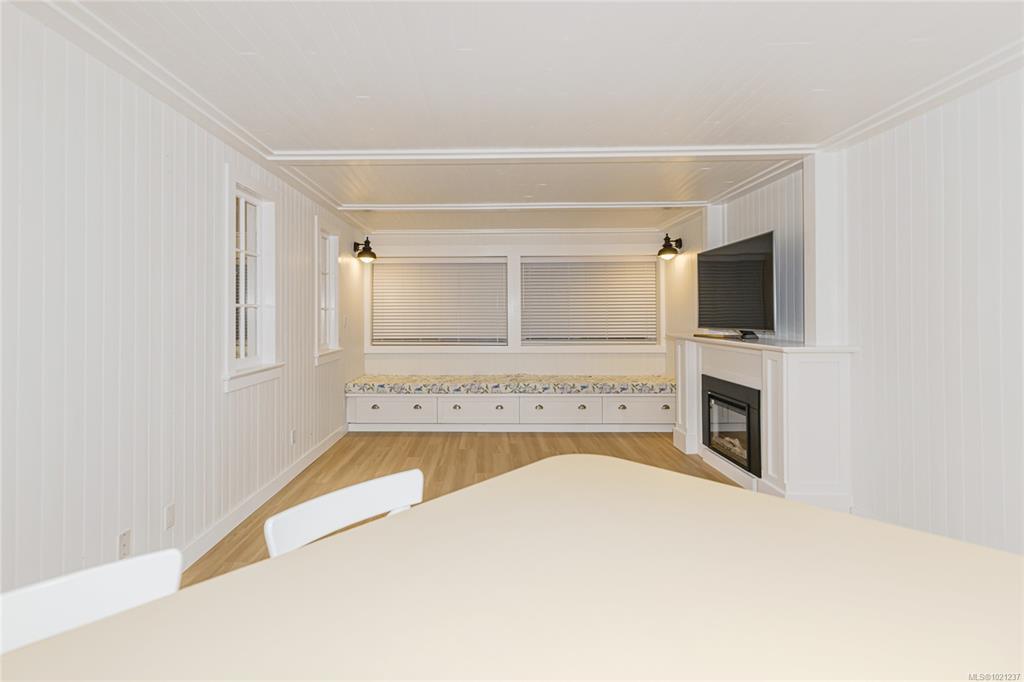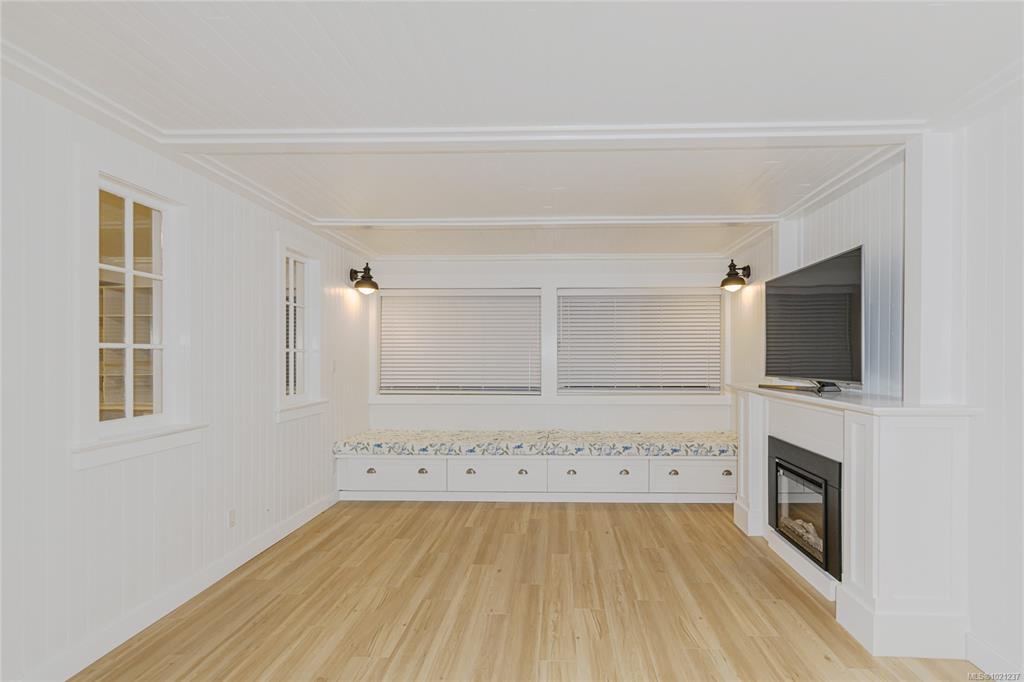 Bright, beautifully updated, and quietly charming—this 1 bed / 1 bath condo offers 716 sq ft of open-concept living in a truly special setting. Crisp beadboard detailing, clean white finishes, and brand-new wide-plank flooring create a fresh, timeless backdrop, while the custom built-in banquette (with drawer storage) adds both character and function beneath oversized windows. The kitchen features a generous peninsula and ample cabinetry, flowing seamlessly into a cozy living area with electric fireplace and built-in TV feature. A modern bathroom with a sleek vanity and glass shower completes the package. Set in a meticulously maintained complex on a quiet, tree-lined street just one block off “the Avenue,” this is turnkey Oak Bay living at its best.