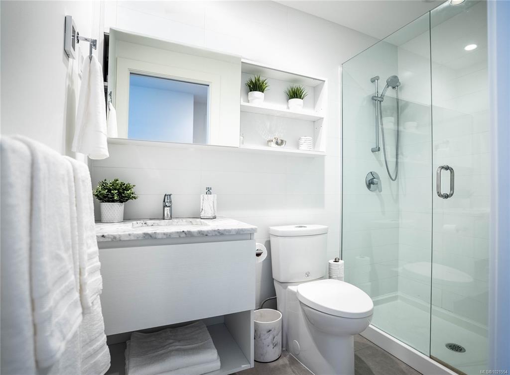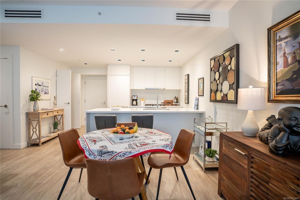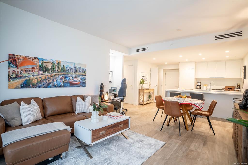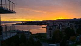 OPEN HOUSE SAT DEC 13, 12-2pm. Welcome to this beautifully finished 960 sq. ft. 2-bedroom, 2-bath home at The Encore, offering stunning views, modern design, and top amenities in one of Victoria’s premier waterfront communities. On the 8th floor, it features 9-ft ceilings, floor-to-ceiling windows, and an open layout that maximizes light and showcases sweeping Inner Harbour, ocean, and city views. The bright living/dining area opens to a large covered balcony. The sleek kitchen includes stainless-steel appliances, a gas cooktop, quartz countertops, and ample storage. Bedrooms are separated for privacy; the primary has a walk-in closet and ensuite, while the second bedroom sits near the main bath—ideal for guests or an office. A desk nook, in-suite laundry, and efficient HVAC add comfort. Encore offers resort-style amenities including a lap pool, gym, cabanas, and outdoor kitchen, all steps from the Westsong Walkway, parks, cafes, and the waterfront.