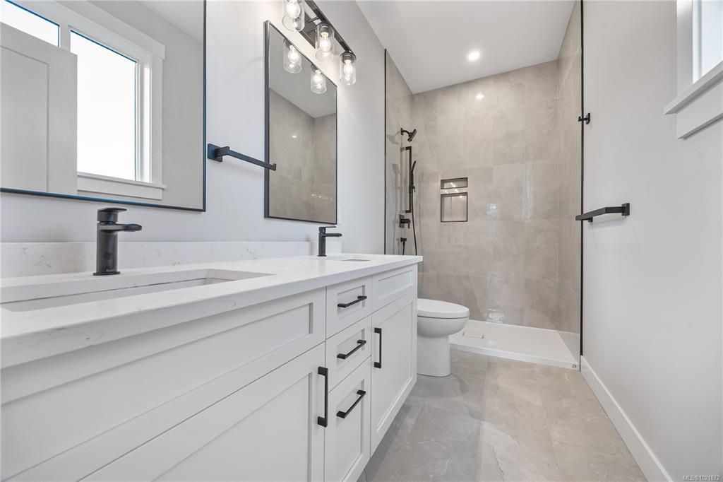 This stunning five-bedroom, three-bath home offers breathtaking ocean views and a host of modern comforts. Located on a quiet roundabout just a short stroll from the Ladysmith Marina, it features a legal two-bedroom suite—ideal for extended family or extra income. The main level showcases an open-concept layout with a high vaulted ceiling in the living room, where you’ll find a cozy natural gas fireplace. The kitchen and bathrooms feature quartz countertops and heated tile floors. Step out onto the large sundeck—perfect for entertaining—with a built-in natural gas BBQ outlet. Both floors offer nine-foot ceilings and forced air heating and cooling for year-round comfort. The durable hardi plank exterior and spacious, level backyard make this home as functional as it is beautiful. A tiled foyer adds a warm welcome. Whether you're seeking space, style, or a smart investment, this home hits the sweet spot—no binoculars needed to enjoy that view!