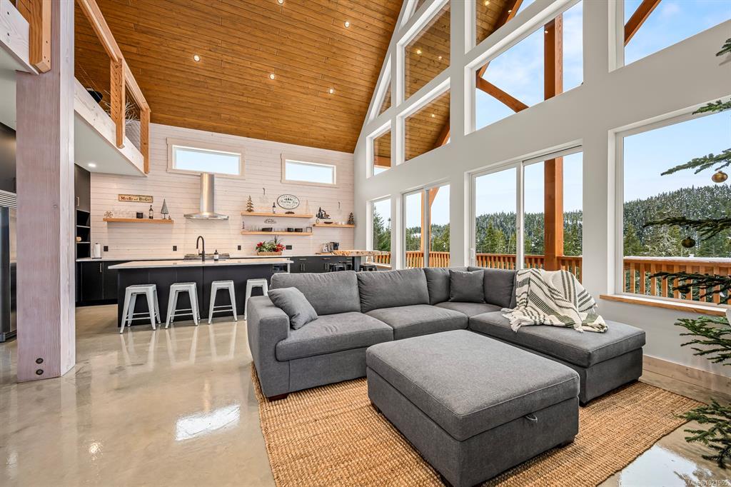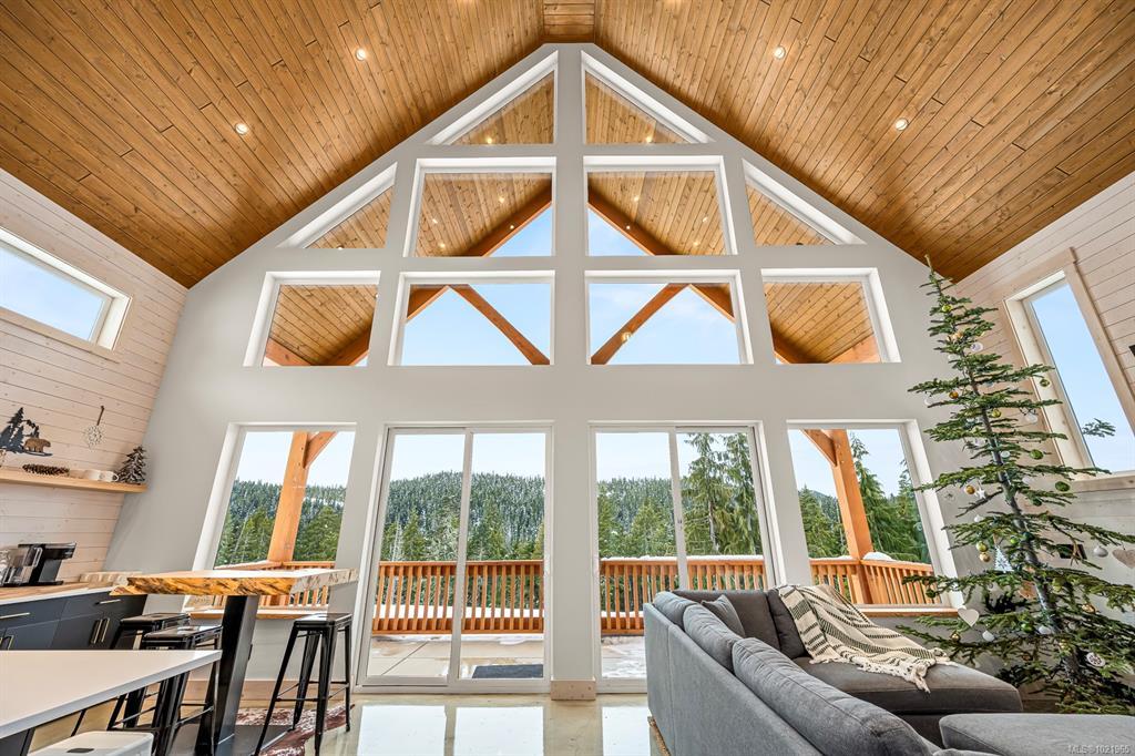 Welcome to your future retreat on Mount Washington! This stunning chalet boasts breathtaking views of Paradise Meadows and surrounding mountains. Inside, floor-to-ceiling windows flood the space with natural light, showcasing nature's beauty. The main house features 2367 sq ft of living space over 2 floors, with 3 bedrooms and 2 bathrooms, plus a custom kitchen ideal for meals and entertaining. A 42-inch linear propane fireplace adds warmth, and the covered concrete deck is perfect for relaxation. Additional highlights include vaulted ceilings, a loft area, sauna, custom shower in the ensuite, and views of the ski hills from the primary bedroom. The lower level has a legal, fully contained suite of 930 sq ft with 2 bedrooms and 2 bathrooms. Built to high standards, the chalet includes concrete floors, an ICF foundation, hydronic heat pump, and energy-efficient insulation. Enjoy skiing, snowboarding, hiking, & biking—all from this exceptional mountain retreat!