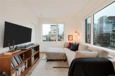 First viewing opportunity Thursday, December 18th 3:00-4:30 so stop by! This modern corner unit has loads of natural light, over-height ceilings and an efficient design for a comfortable living space. This layout offers bedrooms on opposite sides of the suite (great for a roommate) and both bedrooms have walk-in closets and black out blinds. Luxury vinyl plank flooring throughout for a seamless look and easy care cleaning. There is a dedicated parking spot, plus a car and e-bike share program. A dog-lover's ideal with a pet run to keep your pooch entertained and exercised, plus a wash station for dirty paws! Outside children's play area, and a meeting/media room to foster a sense community within Haven. Located on upper Johnson where you can easily walk to the Fernwood or Rockland neighbourhoods, head downtown to take in all the events and sites of vibrant Victoria or go south to Beacon Hill Park. Two terrific grocery stores close by so you can leave your car at home.