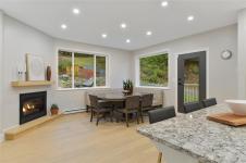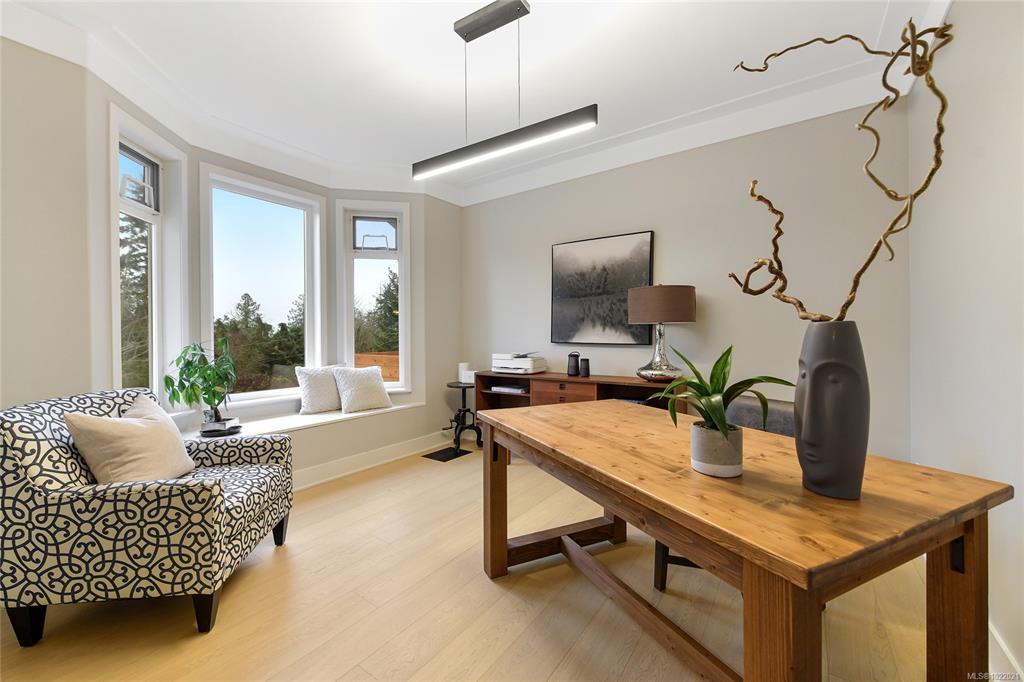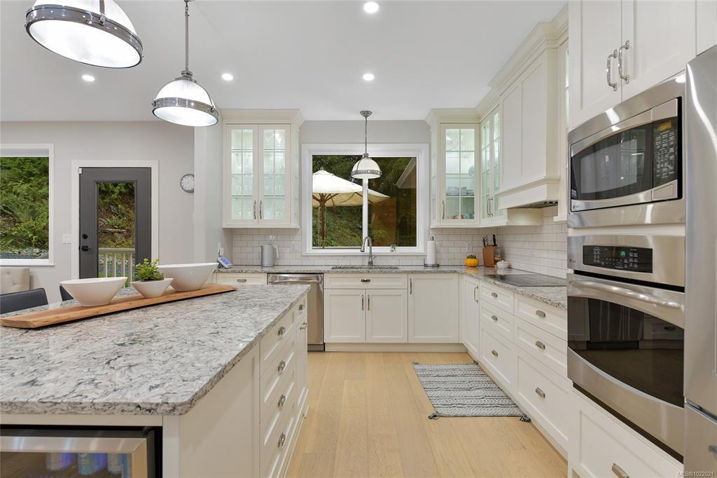 Serenity and privacy at this Lands End location on a quiet acre of land. Over 3600 square feet of updated living space with includes 2600+ square foot main floor with massive living room, updated kitchen with custom cabinetry, quartz counters and built in appliances with island and adjoining family room/dining area. Wrap around deck overlooking peaceful surroundings. Primary suite with walk in closet and luxury ensuite plus 2 additional bedrooms, laundry and office/den/formal dining room. Beautiful wood floors throughout. Lower level is an open area for recreation, studio, gym or theatre including rough in for kitchen and existing full bath- ideal for teens, inlaws, nanny or visiting extended family. Double car garage and loads of storage space. Platform deck at the back of the property to enjoy sunny afternoons with distant ocean views. Parks, trails and beach access nearby plus easy access to Ferries and Victoria International Airport.