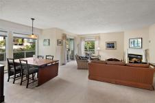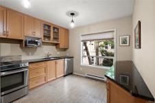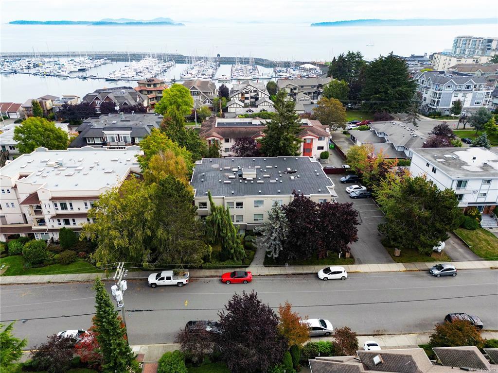 Rarely available in this well-managed building, this spacious 2 bedroom, 2 bathroom NE corner suite offers the ultimate Sidney lifestyle. Steps to shops, restaurants, cafés, and the waterfront, the location couldn’t be better. Large windows flood the home with natural light, highlighting the open living/dining area with cozy fireplace. A covered balcony surrounded by greenery feels like a private forest retreat—perfect for bird watching. The generous floorplan offers more space than most condos, with a large kitchen featuring stainless steel appliances, granite countertops, and built-in buffet. The primary bedroom includes three closets and an ensuite with granite counters. Ample storage throughout completes this rare offering. A bright, spacious home in the heart of Sidney—don’t miss it!